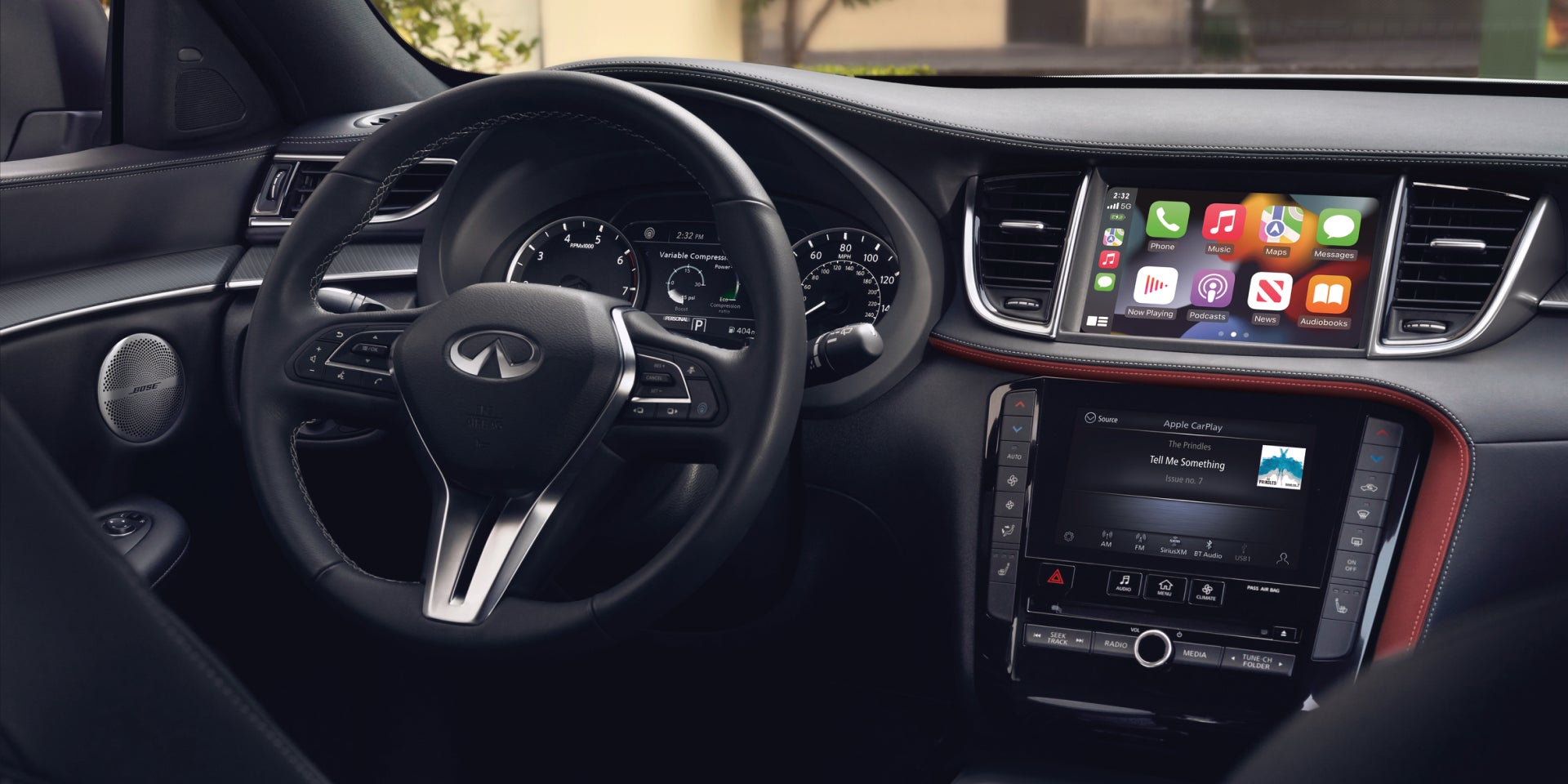 • Wireless Apple CarPlay® - The 2025 INFINITI QX50 comes standard-equipped with wireless Apple CarPlay®, giving you the ability to enjoy the full suite of Apple’s onboard connected offerings – all without ever connecting a cord or a cable.[*]