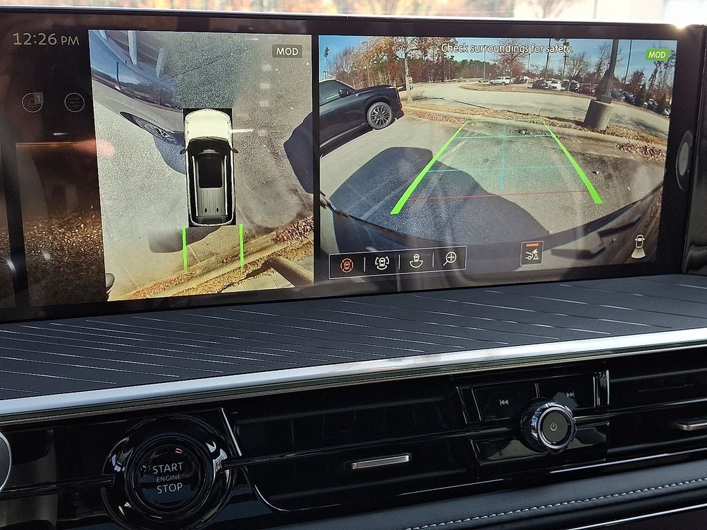Well Equipped with Premium Cargo Package (Cargo Blocks/Stabilizers, Cargo Shelf/Barrier, Carpeted Cargo Area Protector, Console Net, and Soft-Sided Cargo Cooler), 3rd row seats: bench, 4-Wheel Disc Brakes, ABS brakes, Adaptive suspension, Air Conditioning, Alloy wheels, AM/FM radio: SiriusXM with 360L, Anti-whiplash front head restraints, Apple CarPlay/Android Auto, Audio memory, Auto High-beam Headlights, Auto tilt-away steering wheel, Auto-dimming door mirrors, Auto-dimming Rear-View mirror, Auto-leveling suspension, Automatic temperature control, Brake assist, Bumpers: body-color, Compass, Delay-off headlights, Driver door bin, Driver vanity mirror, Dual front impact airbags, Dual front side impact airbags, Electronic Stability Control, Emergency communication system: INFINITI InTouch, Four wheel independent suspension, Front anti-roll bar, Front Bucket Seats, Front Center Armrest, Front dual zone A/C, Front reading lights, Fully automatic headlights, Garage door transmitter: myQ Connected Garage, Genuine wood dashboard insert, Genuine wood door panel insert, Heads-Up Display, Heated and Climate Controlled Front Bucket Seats with Massage, Heated door mirrors, Heated front seats, Heated rear seats, Heated steering wheel, HVAC memory, Illuminated entry, Knee airbag, Leather steering wheel, Low tire pressure warning, Memory seat, Navigation system: Google Built-in, Occupant sensing airbag, Outside temperature display, Overhead airbag, Overhead console, Panic alarm, Passenger door bin, Passenger vanity mirror, Power door mirrors, Power driver seat, Power Liftgate, Power moonroof, Power passenger seat, Power steering, Power windows, Radio data system, Radio: Klipsch Premiere Audio System, Rain sensing wipers, Rear air conditioning, Rear anti-roll bar, Rear reading lights, Rear seat center armrest, Rear window defroster, Rear window wiper, Reclining 3rd row seat, Remote keyless entry, Security system, Semi-Aniline Premium Leather Seating Surfaces, Speed control, Speed-sensing steering, Splash Guards, Split folding rear seat, Spoiler, Steering wheel memory, Steering wheel mounted audio controls, Tachometer, Telescoping steering wheel, Tilt steering wheel, Traction control, Trip computer, Turn signal indicator mirrors, Variably intermittent wipers, Ventilated front seats, Ventilated rear seats, and Wheels: 22 x 8.5J Cast Aluminum-Alloy.