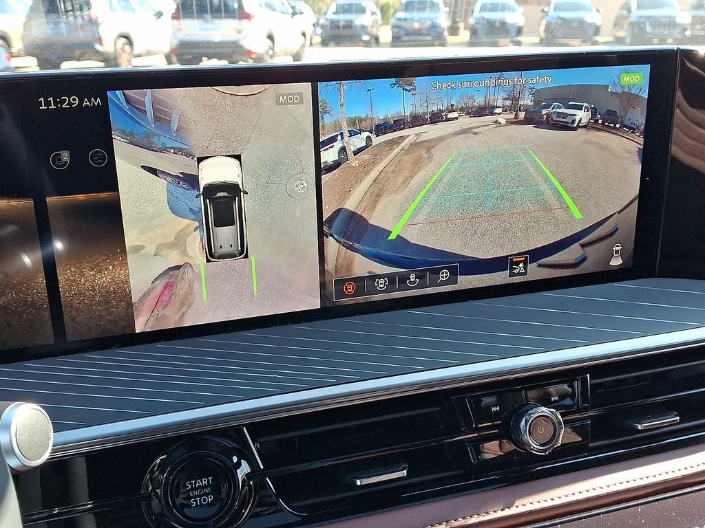 Well Equipped with Premium Cargo Package (Cargo Blocks/Stabilizers, Cargo Shelf/Barrier, Carpeted Cargo Area Protector, Console Net, and Soft-Sided Cargo Cooler), 3rd row seats: bench, 4-Wheel Disc Brakes, ABS brakes, Adaptive suspension, Air Conditioning, Alloy wheels, AM/FM radio: SiriusXM with 360L, Anti-whiplash front head restraints, Apple CarPlay/Android Auto, Audio memory, Auto High-beam Headlights, Auto tilt-away steering wheel, Auto-dimming door mirrors, Auto-dimming Rear-View mirror, Auto-leveling suspension, Automatic temperature control, Brake assist, Bumpers: body-color, Compass, Delay-off headlights, Driver door bin, Driver vanity mirror, Dual front impact airbags, Dual front side impact airbags, Electronic Stability Control, Emergency communication system: INFINITI InTouch, Four wheel independent suspension, Front anti-roll bar, Front Bucket Seats, Front Center Armrest, Front dual zone A/C, Front reading lights, Fully automatic headlights, Garage door transmitter: myQ Connected Garage, Genuine wood dashboard insert, Genuine wood door panel insert, Heads-Up Display, Heated and Climate Controlled Front Bucket Seats with Massage, Heated door mirrors, Heated front seats, Heated rear seats, Heated steering wheel, HVAC memory, Illuminated entry, Knee airbag, Leather steering wheel, Low tire pressure warning, Memory seat, Navigation system: Google Built-in, Occupant sensing airbag, Outside temperature display, Overhead airbag, Overhead console, Panic alarm, Passenger door bin, Passenger vanity mirror, Power door mirrors, Power driver seat, Power Liftgate, Power moonroof, Power passenger seat, Power steering, Power windows, Radio data system, Radio: Klipsch Premiere Audio System, Rain sensing wipers, Rear air conditioning, Rear anti-roll bar, Rear reading lights, Rear seat center armrest, Rear window defroster, Rear window wiper, Reclining 3rd row seat, Remote keyless entry, Security system, Semi-Aniline Premium Leather Seating Surfaces, Speed control, Speed-sensing steering, Splash Guards, Split folding rear seat, Spoiler, Steering wheel memory, Steering wheel mounted audio controls, Tachometer, Telescoping steering wheel, Tilt steering wheel, Traction control, Trip computer, Turn signal indicator mirrors, Two-Tone Premium Paint, Variably intermittent wipers, Ventilated front seats, Ventilated rear seats, and Wheels: 22 x 8.5J Cast Aluminum-Alloy.