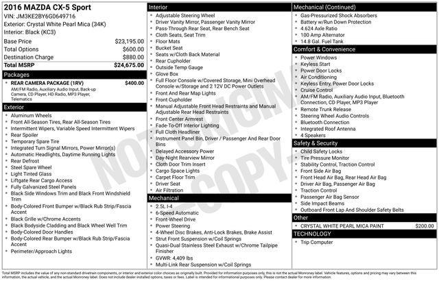 2016 Mazda CX-5 Sport Crystal White Pearl Mica 26/33 City/Highway MPG