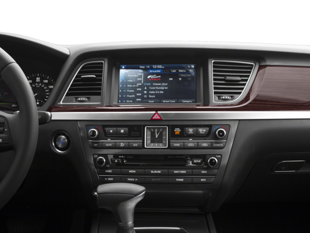 Equipped with Navigation System, 12-Way Power Heated Front Bucket Seats, 18 Alloy Wheels, 4-Wheel Disc Brakes, 7 Speakers, ABS brakes, Air Conditioning, Alloy wheels, AM/FM radio: SiriusXM, Android Auto & Apple CarPlay, Anti-whiplash front head restraints, Auto High-beam Headlights, Auto tilt-away steering wheel, Auto-dimming door mirrors, Auto-dimming Rear-View mirror, Automatic temperature control, Bodyside moldings, Brake assist, Bumpers: body-color, CD player, Compass, Delay-off headlights, Driver door bin, Driver vanity mirror, Dual front impact airbags, Dual front side impact airbags, Electronic Stability Control, Emergency communication system: Genesis Connected Services, Exterior Parking Camera Rear, Four wheel independent suspension, Front anti-roll bar, Front Bucket Seats, Front Center Armrest, Front dual zone A/C, Front reading lights, Fully automatic headlights, Garage door transmitter: HomeLink, Heated door mirrors, Heated front seats, High intensity discharge headlights: Bi-Xenon, Illuminated entry, Knee airbag, Leather Seating Surfaces, Leather Shift Knob, Leather steering wheel, Low tire pressure warning, Memory seat, Occupant sensing airbag, Outside temperature display, Overhead airbag, Overhead console, Panic alarm, Passenger door bin, Passenger vanity mirror, Power door mirrors, Power driver seat, Power passenger seat, Power steering, Power windows, Radio data system, Radio: AM/FM/XM/HD/CD/MP3 Audio System, Rain sensing wipers, Rear anti-roll bar, Rear reading lights, Rear seat center armrest, Rear side impact airbag, Rear window defroster, Remote keyless entry, Security system, Speed control, Speed-sensing steering, Speed-Sensitive Wipers, Steering wheel memory, Steering wheel mounted audio controls, Tachometer, Telescoping steering wheel, Tilt steering wheel, Traction control, Trip computer, Turn signal indicator mirrors, and Variably intermittent wipers.