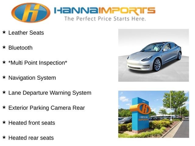 Why shop with Hanna Imports? We specialize in hand-selecting top-quality used cars, trucks, and SUVs for drivers across Raleigh, Durham, Cary, Chapel Hill, and the greater Triangle area of North Carolina. Our massive selection of 1,000+ vehicles on our Raleigh lot is carefully curated to include the most sought-after models, all priced below market value. We believe in transparency and efficiency—our vehicles are aggressively priced from the start, which means no haggling, no hassle, and no wasted time. The price you see is our absolute best price. Whether you're coming from Wake Forest, Apex, Garner, or anywhere in central NC, we’re committed to making your car-buying experience smooth, affordable, and enjoyable. Come see why Hanna Imports is one of the most trusted used car dealerships in North Carolina! Used Tesla Model 3 in Raleigh. Used Tesla Model 3 in North Carolina, Model 3 Long Range, AWD, Exterior Parking Camera Rear, Heated front seats, Heated rear seats, Lane Departure Warning System, Navigation System, 15 Speakers, 4-Wheel Disc Brakes, ABS brakes, Air Conditioning, Alloy wheels, Auto High-beam Headlights, Auto-dimming door mirrors, Auto-dimming Rear-View mirror, Automatic temperature control, Brake assist, Bumpers: body-color, Compass, Delay-off headlights, Driver door bin, Driver vanity mirror, Dual front impact airbags, Dual front side impact airbags, Electronic Stability Control, Four wheel independent suspension, Front anti-roll bar, Front Bucket Seats, Front Center Armrest, Front dual zone A/C, Front fog lights, Front reading lights, Fully automatic headlights, Garage door transmitter: Homelink, Genuine wood dashboard insert, Heated door mirrors, Heated Front Bucket Seats, Illuminated entry, Knee airbag, Low tire pressure warning, Memory seat, Occupant sensing airbag, Outside temperature display, Overhead airbag, Passenger door bin, Passenger vanity mirror, Power door mirrors, Power driver seat, Power passenger seat, Power steering, Power windows, Radio data system, Radio: FM w/Premium Audio System, Rear reading lights, Rear seat center armrest, Rear window defroster, Remote keyless entry, Security system, Speed control, Speed-sensing steering, Split folding rear seat, Steering wheel memory, Steering wheel mounted A/C controls, Steering wheel mounted audio controls, Synthetic Leather Seat Trim, Telescoping steering wheel, Tilt steering wheel, Traction control, Trip computer, Variably intermittent wipers, and Wheels: 18 Aero.