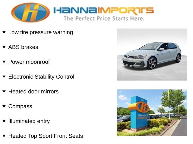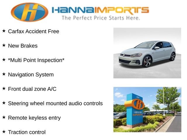 Why shop with Hanna Imports? We specialize in hand-selecting top-quality used cars, trucks, and SUVs for drivers across Raleigh, Durham, Cary, Chapel Hill, and the greater Triangle area of North Carolina. Our massive selection of 1,000+ vehicles on our Raleigh lot is carefully curated to include the most sought-after models, all priced below market value. We believe in transparency and efficiency—our vehicles are aggressively priced from the start, which means no haggling, no hassle, and no wasted time. The price you see is our absolute best price. Whether you're coming from Wake Forest, Apex, Garner, or anywhere in central NC, we’re committed to making your car-buying experience smooth, affordable, and enjoyable. Come see why Hanna Imports is one of the most trusted used car dealerships in North Carolina! Used Volkswagen Golf GTI in Raleigh. Used Volkswagen Golf GTI in North Carolina, Golf GTI Autobahn, ABS brakes, Active Cruise Control, Alloy wheels, Compass, Electronic Stability Control, Front dual zone A/C, Heated door mirrors, Heated front seats, Heated Top Sport Front Seats, Illuminated entry, Low tire pressure warning, Navigation System, Power moonroof, Remote keyless entry, Steering wheel mounted audio controls, Traction control, 4-Wheel Disc Brakes, 9 Speakers, Adaptive suspension, Air Conditioning, AM/FM radio: SiriusXM, Anti-whiplash front head restraints, Auto High-beam Headlights, Auto-dimming Rear-View mirror, Automatic temperature control, Brake assist, Bumpers: body-color, CD player, Delay-off headlights, Driver door bin, Driver vanity mirror, Dual front impact airbags, Dual front side impact airbags, Emergency communication system: VW Car-Net, Exterior Parking Camera Rear, Four wheel independent suspension, Front anti-roll bar, Front Bucket Seats, Front Center Armrest, Front fog lights, Front reading lights, Fully automatic headlights, Leather Seating Surfaces, Leather Shift Knob, Leather steering wheel, Occupant sensing airbag, Outside temperature display, Overhead airbag, Overhead console, Panic alarm, Passenger door bin, Passenger vanity mirror, Power door mirrors, Power driver seat, Power passenger seat, Power steering, Power windows, Radio data system, Radio: Discover Media w/8 Touchscreen Navigation, Rain sensing wipers, Rear anti-roll bar, Rear reading lights, Rear seat center armrest, Rear window defroster, Rear window wiper, Speed control, Speed-sensing steering, Speed-Sensitive Wipers, Split folding rear seat, Spoiler, Sport steering wheel, Tachometer, Telescoping steering wheel, Tilt steering wheel, Trip computer, Turn signal indicator mirrors, Variably intermittent wipers, and Wheels: 18 Dallas Alloy.