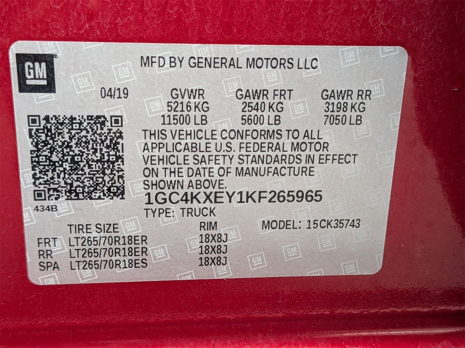 - Spare Tire Size: LT265/70R18E