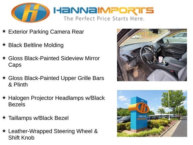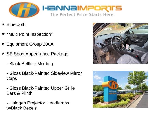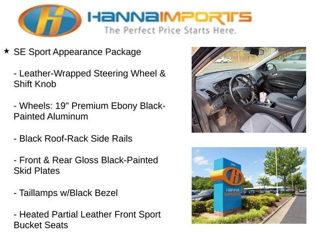 Why shop with Hanna Imports? We specialize in hand-selecting top-quality used cars, trucks, and SUVs for drivers across Raleigh, Durham, Cary, Chapel Hill, and the greater Triangle area of North Carolina. Our massive selection of 1,000+ vehicles on our Raleigh lot is carefully curated to include the most sought-after models, all priced below market value. We believe in transparency and efficiency—our vehicles are aggressively priced from the start, which means no haggling, no hassle, and no wasted time. The price you see is our absolute best price. Whether you're coming from Wake Forest, Apex, Garner, or anywhere in central NC, we’re committed to making your car-buying experience smooth, affordable, and enjoyable. Come see why Hanna Imports is one of the most trusted used car dealerships in North Carolina! Used Ford Escape in Raleigh. Used Ford Escape in North Carolina, Equipment Group 200A, SE Sport Appearance Package (Black Beltline Molding, Black Roof-Rack Side Rails, Front & Rear Gloss Black-Painted Skid Plates, Gloss Black-Painted Sideview Mirror Caps, Gloss Black-Painted Upper Grille Bars & Plinth, Halogen Projector Headlamps w/Black Bezels, Heated Partial Leather Front Sport Bucket Seats, Leather-Wrapped Steering Wheel & Shift Knob, Taillamps w/Black Bezel, and Wheels: 19 Premium Ebony Black-Painted Aluminum), Escape SE, AppLink/Apple CarPlay and Android Auto, Exterior Parking Camera Rear, 3.21 Axle Ratio, 4-Wheel Disc Brakes, 6 Speakers, ABS brakes, Air Conditioning, Alloy wheels, AM/FM radio: SiriusXM, Automatic temperature control, Brake assist, Bumpers: body-color, Compass, Delay-off headlights, Driver door bin, Driver vanity mirror, Dual front impact airbags, Dual front side impact airbags, Electronic Stability Control, Emergency communication system: SYNC 3 911 Assist, FordPass Connect, Four wheel independent suspension, Front anti-roll bar, Front Bucket Seats, Front Center Armrest, Front dual zone A/C, Front fog lights, Front reading lights, Fully automatic headlights, Heated front seats, Heated Unique Cloth Front Bucket Seats, Illuminated entry, Knee airbag, Low tire pressure warning, Occupant sensing airbag, Outside temperature display, Overhead airbag, Overhead console, Panic alarm, Passenger door bin, Passenger vanity mirror, Power door mirrors, Power driver seat, Power steering, Power windows, Radio data system, Radio: AM/FM Stereo w/MP3 Capable, Rear anti-roll bar, Rear seat center armrest, Rear window defroster, Rear window wiper, Remote keyless entry, Security system, Speed control, Speed-sensing steering, Split folding rear seat, Steering wheel mounted audio controls, SYNC 3 Communications & Entertainment System, Tachometer, Telescoping steering wheel, Tilt steering wheel, Traction control, Trip computer, Variably intermittent wipers, and Wheels: 17 Sparkle Silver-Painted Aluminum.