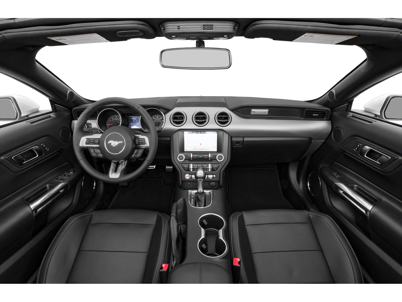 Equipped with 4-Wheel Disc Brakes, ABS brakes, Air Conditioning, Alloy wheels, AM/FM Stereo, Auto-dimming Rear-View mirror, Brake assist, Bumpers: body-color, Compass, Convertible roof lining, Delay-off headlights, Driver door bin, Driver vanity mirror, Dual front impact airbags, Dual front side impact airbags, Electronic Stability Control, Emergency communication system: 911 Assist, Exterior Parking Camera Rear, Four wheel independent suspension, Front anti-roll bar, Front Bucket Seats, Front Center Armrest, Front reading lights, Fully automatic headlights, Glass rear window, Illuminated entry, Knee airbag, Leather Shift Knob, Low tire pressure warning, Occupant sensing airbag, Outside temperature display, Overhead console, Panic alarm, Passenger door bin, Passenger vanity mirror, Power convertible roof, Power door mirrors, Power steering, Power windows, Radio data system, Rear anti-roll bar, Rear window defroster, Remote keyless entry, Security system, SiriusXM Radio, Speed control, Speed-sensing steering, Speed-Sensitive Wipers, Steering wheel mounted audio controls, SYNC 3 Communications & Entertainment System, Tachometer, Telescoping steering wheel, Tilt steering wheel, Traction control, Trip computer, Variably intermittent wipers, Voltmeter, and Wheels: 18 x 8 Machined-Face Aluminum.