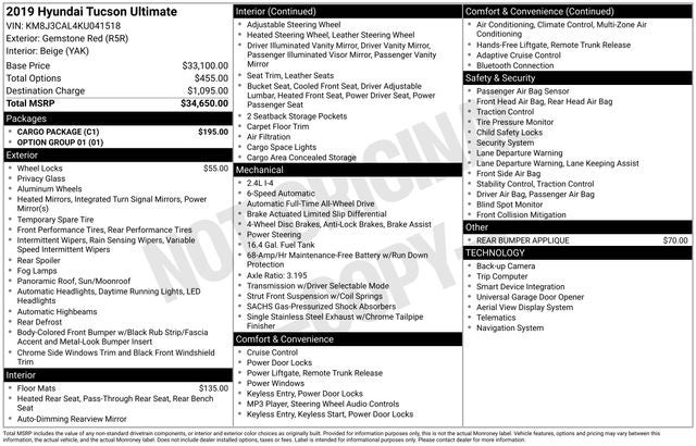 2019 Hyundai Tucson Ultimate Gemstone Red 21/26 City/Highway MPG