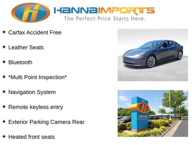 Why shop with Hanna Imports? We specialize in hand-selecting top-quality used cars, trucks, and SUVs for drivers across Raleigh, Durham, Cary, Chapel Hill, and the greater Triangle area of North Carolina. Our massive selection of 1,000+ vehicles on our Raleigh lot is carefully curated to include the most sought-after models, all priced below market value. We believe in transparency and efficiency—our vehicles are aggressively priced from the start, which means no haggling, no hassle, and no wasted time. The price you see is our absolute best price. Whether you're coming from Wake Forest, Apex, Garner, or anywhere in central NC, we’re committed to making your car-buying experience smooth, affordable, and enjoyable. Come see why Hanna Imports is one of the most trusted used car dealerships in North Carolina! Used Tesla Model 3 in Raleigh. Used Tesla Model 3 in North Carolina, Model 3 Long Range, AWD, Exterior Parking Camera Rear, Heated front seats, Heated rear seats, Navigation System, Remote keyless entry, 15 Speakers, 4-Wheel Disc Brakes, ABS brakes, Air Conditioning, Alloy wheels, Auto High-beam Headlights, Auto-dimming door mirrors, Auto-dimming Rear-View mirror, Automatic temperature control, Brake assist, Bumpers: body-color, Compass, Delay-off headlights, Driver door bin, Driver vanity mirror, Dual front impact airbags, Dual front side impact airbags, Electronic Stability Control, Four wheel independent suspension, Front anti-roll bar, Front Bucket Seats, Front Center Armrest, Front dual zone A/C, Front fog lights, Front reading lights, Fully automatic headlights, Genuine wood dashboard insert, Heated door mirrors, Illuminated entry, Knee airbag, Low tire pressure warning, Memory seat, Occupant sensing airbag, Outside temperature display, Overhead airbag, Passenger door bin, Passenger vanity mirror, Power door mirrors, Power driver seat, Power passenger seat, Power steering, Power windows, Premium Audio System, Premium Heated Front Bucket Seats, Premium Seat Trim, Radio data system, Rear reading lights, Rear seat center armrest, Rear window defroster, Security system, Speed control, Speed-sensing steering, Split folding rear seat, Steering wheel memory, Steering wheel mounted A/C controls, Steering wheel mounted audio controls, Telescoping steering wheel, Tilt steering wheel, Traction control, Trip computer, Variably intermittent wipers, and Wheels: 18 Aero.