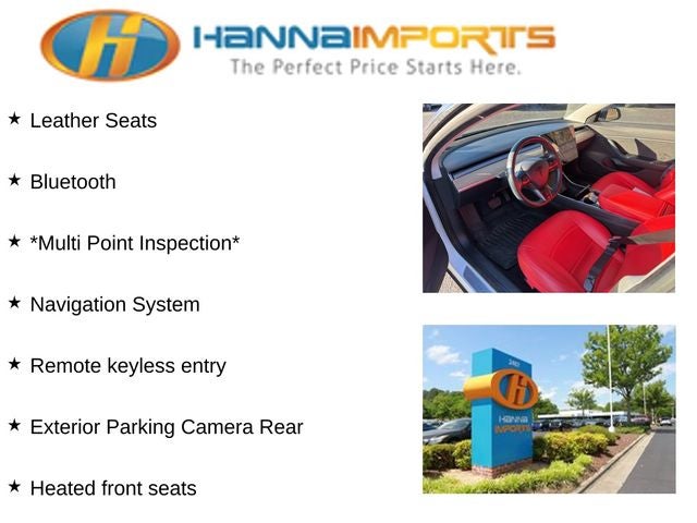 Why shop with Hanna Imports? We specialize in hand-selecting top-quality used cars, trucks, and SUVs for drivers across Raleigh, Durham, Cary, Chapel Hill, and the greater Triangle area of North Carolina. Our massive selection of 1,000+ vehicles on our Raleigh lot is carefully curated to include the most sought-after models, all priced below market value. We believe in transparency and efficiency—our vehicles are aggressively priced from the start, which means no haggling, no hassle, and no wasted time. The price you see is our absolute best price. Whether you're coming from Wake Forest, Apex, Garner, or anywhere in central NC, we’re committed to making your car-buying experience smooth, affordable, and enjoyable. Come see why Hanna Imports is one of the most trusted used car dealerships in North Carolina! Used Tesla Model 3 in Raleigh. Used Tesla Model 3 in North Carolina, Model 3 Standard Range Plus, Exterior Parking Camera Rear, Heated front seats, Navigation System, Remote keyless entry, 4-Wheel Disc Brakes, 8 Speakers, ABS brakes, Air Conditioning, Alloy wheels, Auto High-beam Headlights, Auto-dimming door mirrors, Auto-dimming Rear-View mirror, Automatic temperature control, Brake assist, Bumpers: body-color, Compass, Delay-off headlights, Driver door bin, Driver vanity mirror, Dual front impact airbags, Dual front side impact airbags, Electronic Stability Control, Four wheel independent suspension, Front anti-roll bar, Front Bucket Seats, Front Center Armrest, Front dual zone A/C, Front fog lights, Front reading lights, Fully automatic headlights, Genuine wood dashboard insert, Heated door mirrors, Illuminated entry, Knee airbag, Low tire pressure warning, Memory seat, Occupant sensing airbag, Outside temperature display, Overhead airbag, Passenger door bin, Passenger vanity mirror, Power door mirrors, Power driver seat, Power passenger seat, Power steering, Power windows, Premium Heated Front Bucket Seats, Premium Seat Trim, Radio data system, Radio: Upgraded Audio System, Rear reading lights, Rear seat center armrest, Rear window defroster, Security system, Speed control, Speed-sensing steering, Split folding rear seat, Steering wheel memory, Steering wheel mounted A/C controls, Steering wheel mounted audio controls, Telescoping steering wheel, Tilt steering wheel, Traction control, Trip computer, Variably intermittent wipers, and Wheels: 18 Aero.