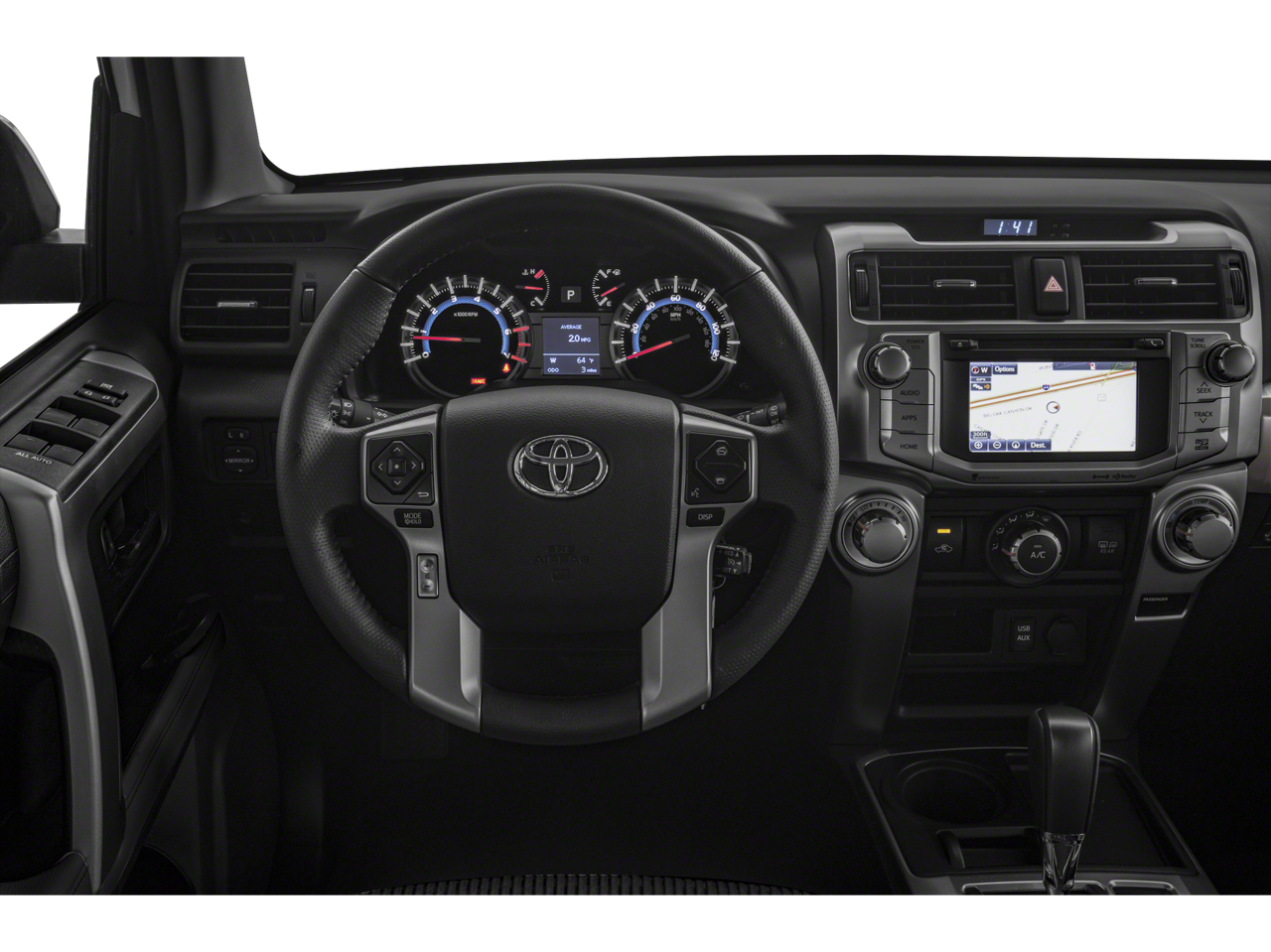 Equipped with 4WD, Sand Beige w/Leather Seat Trim, 17 x 7.0 6-Spoke Alloy Wheels, ABS brakes, Alloy wheels, Body Color Heated Mirrors, Compass, Electronic Stability Control, Heated door mirrors, Heated Front Bucket Seats, Heated front seats, Illuminated entry, Low tire pressure warning, Remote keyless entry, Traction control, 3.727 Axle Ratio, 4-Wheel Disc Brakes, 8 Speakers, Air Conditioning, AM/FM radio: SiriusXM, Anti-whiplash front head restraints, Auto-Dimming Rear-View Mirror, Auto-dimming Rear-View mirror, Brake assist, Bumpers: body-color, CD player, Driver door bin, Driver vanity mirror, Dual front impact airbags, Dual front side impact airbags, Emergency communication system: Safety Connect, Exterior Parking Camera Rear, Front anti-roll bar, Front Bucket Seats, Front Center Armrest, Front fog lights, Front reading lights, Front wheel independent suspension, Garage Door Opener, Garage door transmitter: HomeLink, Knee airbag, Leather Shift Knob, Leather steering wheel, Occupant sensing airbag, Outside temperature display, Overhead airbag, Overhead console, Panic alarm, Passenger door bin, Passenger vanity mirror, Power door mirrors, Power driver seat, Power passenger seat, Power steering, Power windows, Radio: Entune Premium Audio w/Navigation, Rear anti-roll bar, Rear seat center armrest, Rear window defroster, Rear window wiper, Roof rack: rails only, Security system, Softex Synthetic Leather Seat Trim, Speed control, Speed-sensing steering, Split folding rear seat, Spoiler, Steering wheel mounted audio controls, Tachometer, Telescoping steering wheel, Tilt steering wheel, Trip computer, Turn signal indicator mirrors, and Variably intermittent wipers.