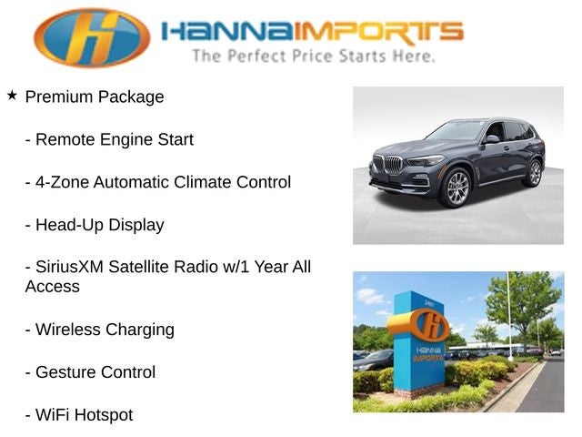 Why shop with Hanna Imports? We specialize in hand-selecting top-quality used cars, trucks, and SUVs for drivers across Raleigh, Durham, Cary, Chapel Hill, and the greater Triangle area of North Carolina. Our massive selection of 1,000+ vehicles on our Raleigh lot is carefully curated to include the most sought-after models, all priced below market value. We believe in transparency and efficiency—our vehicles are aggressively priced from the start, which means no haggling, no hassle, and no wasted time. The price you see is our absolute best price. Whether you're coming from Wake Forest, Apex, Garner, or anywhere in central NC, we’re committed to making your car-buying experience smooth, affordable, and enjoyable. Come see why Hanna Imports is one of the most trusted used car dealerships in North Carolina! Used BMW X5 in Raleigh. Used BMW X5 in North Carolina, Parking Assistance Package (Active Park Distance Control, Parking Assistant Plus, Rear-View Camera, and Surround View w/3D View), Premium Package (4-Zone Automatic Climate Control, Enhanced USB & Bluetooth®, Gesture Control, Head-Up Display, Remote Engine Start, SiriusXM Satellite Radio w/1 Year All Access, WiFi Hotspot, and Wireless Charging), X5 sDrive40i, Coffee Leather, Apple CarPlay Compatibility, Exterior Parking Camera Rear, Heated Front Seats, Navigation System, Power moonroof, 10 Speakers, 3.39 Axle Ratio, 4-Wheel Disc Brakes, ABS brakes, Air Conditioning, Alloy wheels, AM/FM radio, AM/FM Stereo, Auto High-beam Headlights, Auto tilt-away steering wheel, Auto-dimming door mirrors, Auto-dimming Rear-View mirror, Automatic temperature control, Brake assist, Bumpers: body-color, Compass, Delay-off headlights, Driver door bin, Driver vanity mirror, Dual front impact airbags, Dual front side impact airbags, Electronic Stability Control, Emergency communication system: BMW Assist eCall, Four wheel independent suspension, Front & Rear Heated Seats, Front anti-roll bar, Front Bucket Seats, Front Center Armrest, Front dual zone A/C, Front fog lights, Front reading lights, Fully automatic headlights, Garage door transmitter, Genuine wood console insert, Genuine wood dashboard insert, Genuine wood door panel insert, harman/kardon Surround Sound System, Head restraints memory, Heated door mirrors, Heated front seats, Heated Front Seats w/Armrests & Steering Wheel, Hi-Fi Sound System, Illuminated entry, Knee airbag, Leather Shift Knob, Leather steering wheel, Low tire pressure warning, Lumbar Support, Memory seat, Occupant sensing airbag, Outside temperature display, Overhead airbag, Panic alarm, Passenger door bin, Passenger vanity mirror, Power adjustable front head restraints, Power door mirrors, Power driver seat, Power Front Seats, Power passenger seat, Power steering, Power windows, Radio data system, Rain sensing wipers, Rear air conditioning, Rear anti-roll bar, Rear reading lights, Rear seat center armrest, Rear window defroster, Rear window wiper, Remote keyless entry, Roof rack: rails only, Security system, SensaTec Upholstery, Speed control, Speed-sensing steering, Speed-Sensitive Wipers, Split folding rear seat, Spoiler, Sport Seats, Sport steering wheel, Steering wheel memory, Steering wheel mounted audio controls, Tachometer, Telescoping steering wheel, Tilt steering wheel, Traction control, Trip computer