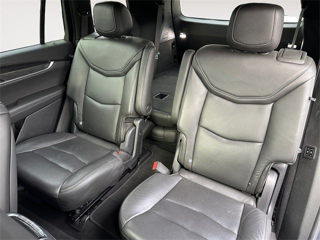 Equipped with Interior Protection Package (LPO) (All-Weather Cargo Tray (LPO) and All-Weather Floor Mats), Radio: Cadillac User Experience w/Embedded Nav (Bose Performance Series Audio System and SiriusXM w/360L), Sport Package 1SF (Automatic Emergency Braking, Bose Premium 8-Speaker Audio System, Front & Rear Park Assist, and Teen Driver), 2-Way Power Driver Lumbar Control Seat Adjuster, 2-Way Power Passenger Lumbar Control Seat Adjuster, 3.49 Axle Ratio, 3rd row seats: split-bench, 4-Wheel Disc Brakes, 6-Passenger Seating, 8 Speakers, ABS brakes, Adaptive suspension, Air Conditioning, Alloy wheels, AM/FM radio: SiriusXM, AppLink/Apple CarPlay and Android Auto, Audio memory, Auto High-beam Headlights, Auto tilt-away steering wheel, Auto-dimming door mirrors, Auto-dimming Rear-View mirror, Automatic Stop/Start w/Disable, Automatic temperature control, Body-Color Door Handles, Brake assist, Bumpers: body-color, Compass, Delay-off headlights, Driver & Front Passenger Heated Seats, Driver door bin, Driver vanity mirror, Dual front impact airbags, Dual front side impact airbags, Electronic Stability Control, Emergency communication system: OnStar and Cadillac connected services capable, Exterior Parking Camera Rear, Four wheel independent suspension, Front anti-roll bar, Front Bucket Seats, Front Center Armrest, Front dual zone A/C, Front reading lights, Fully automatic headlights, Garage door transmitter, Heated door mirrors, Heated front seats, Heated steering wheel, Illuminated entry, Knee airbag, Leather Seating Surfaces w/Mini-Perforated Inserts, Leather steering wheel, Low tire pressure warning, Memory seat, Occupant sensing airbag, Outside temperature display, Overhead airbag, Overhead console, Panic alarm, Passenger door bin, Passenger vanity mirror, Performance Suspension, Power door mirrors, Power driver seat, Power Liftgate, Power moonroof: UltraView, Power passenger seat, Power steering, Power windows, Radio data system, Radio: Cadillac User Experience AM/FM Stereo, Rain sensing wipers, Rear air conditioning, Rear anti-roll bar, Rear reading lights, Rear seat center armrest, Rear window defroster, Rear window wiper, Remote keyless entry, Roof rack: rails only, Security system, Speed control, Speed-sensing steering, Split folding rear seat, Spoiler, Steering wheel memory, Steering wheel mounted audio controls, Tachometer, Telescoping steering wheel, Tilt steering wheel, Traction control, Trip computer, Turn signal indicator mirrors, Variably intermittent wipers, Voltmeter, Wheels: 20 12-Spoke Alloy w/Pearl Nickel Finish, and Wheels: 21 12-Split Spoke Alloy.