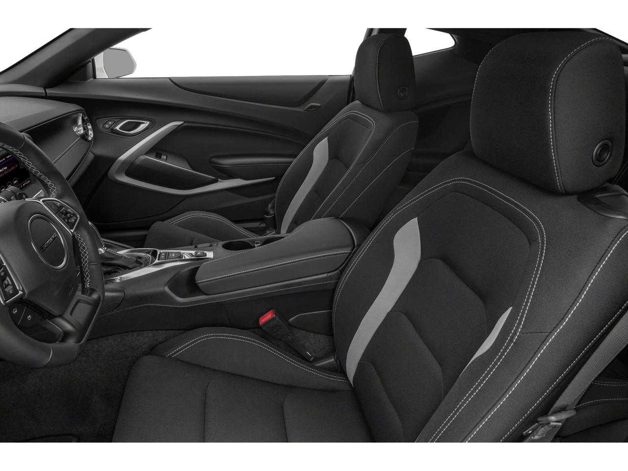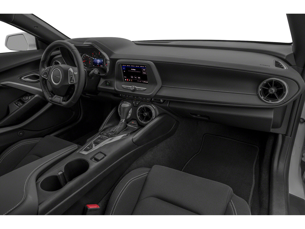 Equipped with 4-Wheel Disc Brakes, 6 Speakers, 6-Speaker Audio System Feature, 6-Way Power Front Passenger Seat Adjuster, 8-Way Power Driver Seat Adjuster, ABS brakes, Air Conditioning, Alloy wheels, Apple CarPlay/Android Auto, Automatic temperature control, Bluetooth® For Phone, Brake assist, Bumpers: body-color, Cloth Seat Trim, Compass, Delay-off headlights, Driver door bin, Driver vanity mirror, Dual front impact airbags, Dual front side impact airbags, Dual Mode Exhaust, Electronic Stability Control, Exterior Parking Camera Rear, Four wheel independent suspension, Front anti-roll bar, Front Bucket Seats, Front Center Armrest, Front reading lights, Front Sport Bucket Seats, Fully automatic headlights, Illuminated entry, Knee airbag, Leather Shift Knob, Low tire pressure warning, Occupant sensing airbag, Overhead airbag, Panic alarm, Passenger door bin, Passenger vanity mirror, Power door mirrors, Power driver seat, Power passenger seat, Power steering, Power windows, Premium audio system: Chevrolet Infotainment System, Radio data system, Radio: Chevrolet Infotainment 3 Plus System, Rear anti-roll bar, Rear window defroster, Remote keyless entry, Security system, SiriusXM w/360L, Speed control, Speed-sensing steering, Steering wheel mounted audio controls, Tachometer, Telescoping steering wheel, Tilt steering wheel, Traction control, Trip computer, Variably intermittent wipers, and Voltmeter.