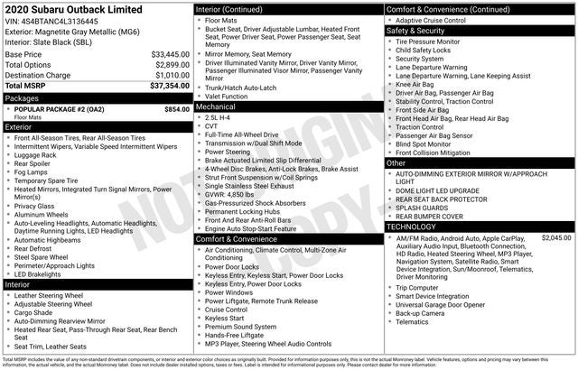 2020 Subaru Outback Limited Magnetite Gray Metallic Odometer is 14507 miles below market average! 26/33 City/Highway MPG