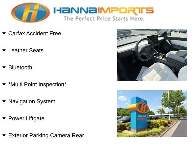 Why shop with Hanna Imports? We specialize in hand-selecting top-quality used cars, trucks, and SUVs for drivers across Raleigh, Durham, Cary, Chapel Hill, and the greater Triangle area of North Carolina. Our massive selection of 1,000+ vehicles on our Raleigh lot is carefully curated to include the most sought-after models, all priced below market value. We believe in transparency and efficiency—our vehicles are aggressively priced from the start, which means no haggling, no hassle, and no wasted time. The price you see is our absolute best price. Whether you're coming from Wake Forest, Apex, Garner, or anywhere in central NC, we’re committed to making your car-buying experience smooth, affordable, and enjoyable. Come see why Hanna Imports is one of the most trusted used car dealerships in North Carolina! Used Tesla Model Y in Raleigh. Used Tesla Model Y in North Carolina, Model Y Long Range, AWD, Exterior Parking Camera Rear, Navigation System, Power Liftgate, 15 Speakers, 4-Wheel Disc Brakes, 5 Seat Interior, 9.0 Axle Ratio, ABS brakes, Air Conditioning, Alloy wheels, Auto High-beam Headlights, Auto tilt-away steering wheel, Auto-dimming door mirrors, Auto-dimming Rear-View mirror, Automatic temperature control, Brake assist, Bumpers: body-color, Compass, Delay-off headlights, Driver door bin, Driver vanity mirror, Dual front impact airbags, Dual front side impact airbags, Electronic Stability Control, Four wheel independent suspension, Front anti-roll bar, Front Bucket Seats, Front Center Armrest, Front dual zone A/C, Front fog lights, Front reading lights, Fully automatic headlights, Genuine wood dashboard insert, Heated door mirrors, Heated front seats, Heated rear seats, Illuminated entry, Knee airbag, Low tire pressure warning, Memory seat, Occupant sensing airbag, Outside temperature display, Overhead airbag, Passenger door bin, Passenger vanity mirror, Power door mirrors, Power driver seat, Power passenger seat, Power steering, Power windows, Premium Audio System, Premium Seat Trim, Radio data system, Rain sensing wipers, Rear reading lights, Rear seat center armrest, Rear window defroster, Remote keyless entry, Security system, Speed control, Speed-sensing steering, Split folding rear seat, Steering wheel memory, Steering wheel mounted A/C controls, Steering wheel mounted audio controls, Telescoping steering wheel, Tilt steering wheel, Traction control, Trip computer, Variably intermittent wipers, and Wheels: 19 x 9.5 Gemini.