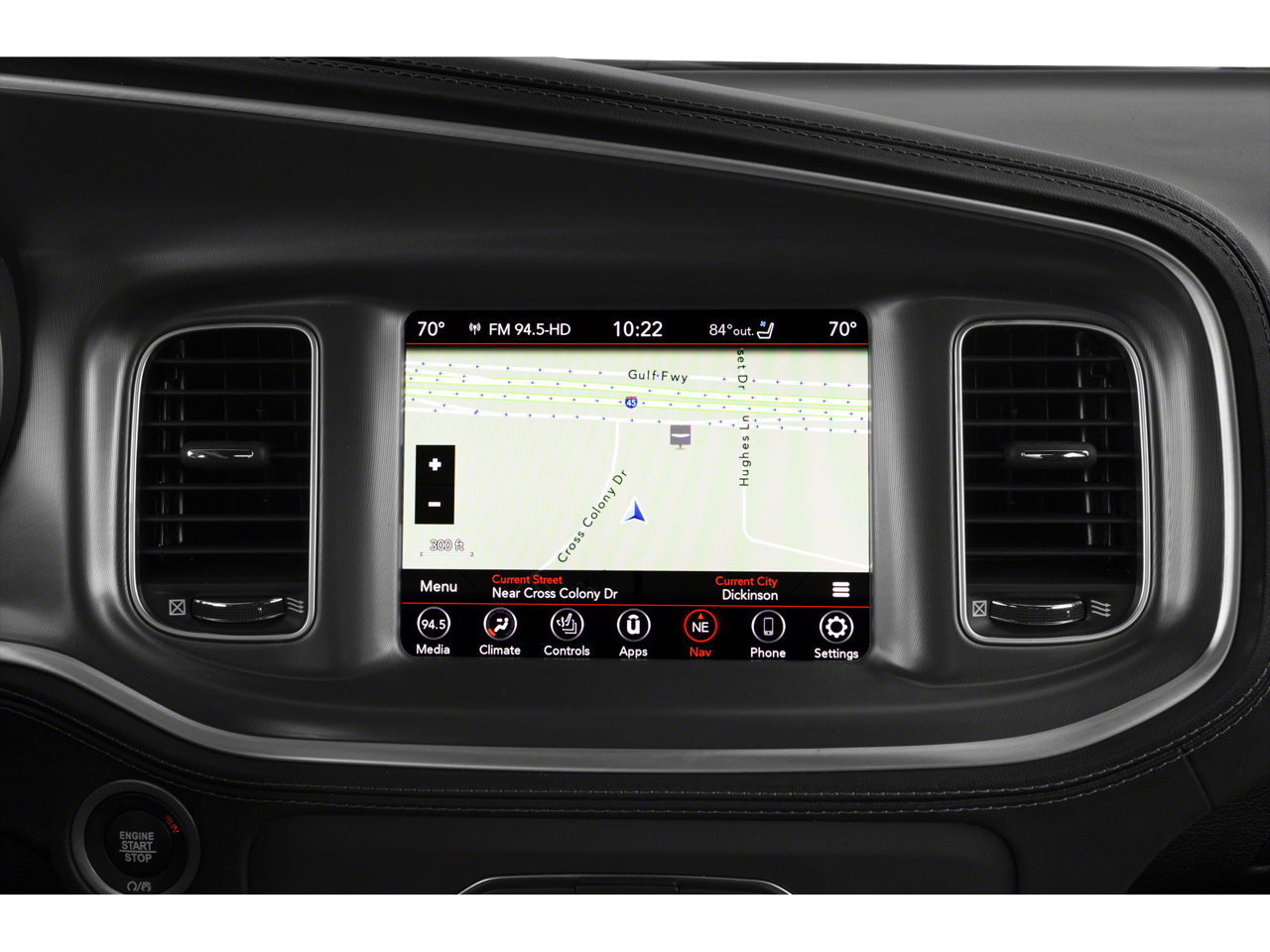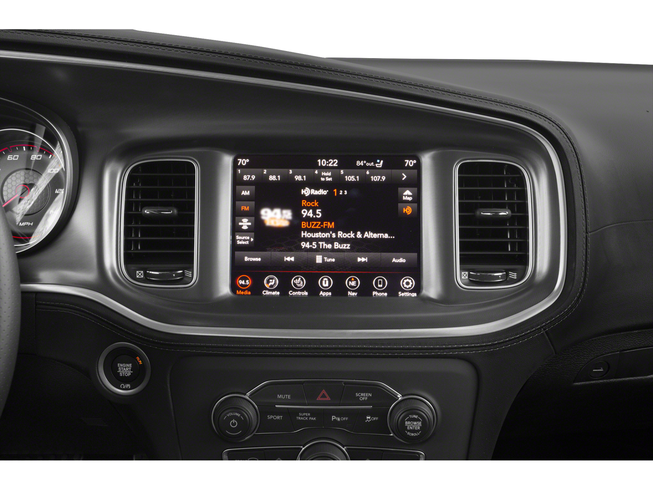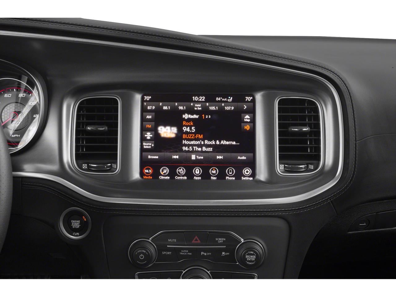 Equipped with Blacktop Package (Black 1-Piece Performance Spoiler, Black Badge, Black Dodge Grille Badge, Gloss Black I/P Cluster Trim Rings, Satin Black Charger Decklid Badge, Satin Black Dodge Tail Lamp Badge, and Wheels: 20 x 8.0 Black Noise Painted), Cold Weather Package (Heated Front Seats and Heated Steering Wheel), Quick Order Package 2EH, Black Cloth, 4-Wheel Disc Brakes, 6 Speakers, ABS brakes, Air Conditioning, Alloy wheels, AM/FM radio: SiriusXM, Anti-whiplash front head restraints, Apple CarPlay/Android Auto, Auto-dimming Rear-View mirror, Automatic temperature control, Brake assist, Bumpers: body-color, Cloth Performance Seats, Compass, Delay-off headlights, Driver door bin, Driver vanity mirror, Dual front impact airbags, Dual front side impact airbags, Electronic Stability Control, Emergency communication system: SiriusXM Guardian, Four wheel independent suspension, Front anti-roll bar, Front Bucket Seats, Front Center Armrest, Front dual zone A/C, Front fog lights, Front License Plate Bracket, Front reading lights, Fully automatic headlights, Garage door transmitter: HomeLink, Heated door mirrors, Illuminated entry, Knee airbag, Leather Shift Knob, Low tire pressure warning, Occupant sensing airbag, Outside temperature display, Overhead airbag, Overhead console, Panic alarm, ParkView Rear Back-Up Camera, Passenger door bin, Passenger vanity mirror, Power door mirrors, Power driver seat, Power steering, Power windows, Radio data system, Radio: Uconnect 4C w/8.4 Display, Rear anti-roll bar, Rear reading lights, Rear seat center armrest, Rear window defroster, Remote keyless entry, Speed control, Speed-Sensitive Wipers, Split folding rear seat, Spoiler, Sport steering wheel, Steering wheel mounted audio controls, Tachometer, Telescoping steering wheel, Tilt steering wheel, Traction control, Trip computer, Variably intermittent wipers, and Wheels: 20 x 8.0 Satin Carbon Painted.