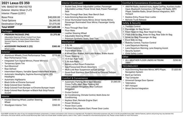 2021 Lexus ES 350 Atomic Silver Odometer is 2808 miles below market average! 22/32 City/Highway MPG