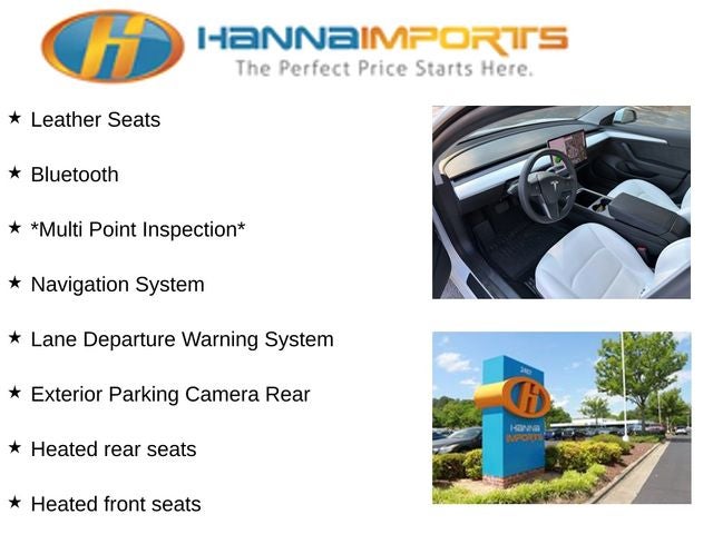 Why shop with Hanna Imports? We specialize in hand-selecting top-quality used cars, trucks, and SUVs for drivers across Raleigh, Durham, Cary, Chapel Hill, and the greater Triangle area of North Carolina. Our massive selection of 1,000+ vehicles on our Raleigh lot is carefully curated to include the most sought-after models, all priced below market value. We believe in transparency and efficiency—our vehicles are aggressively priced from the start, which means no haggling, no hassle, and no wasted time. The price you see is our absolute best price. Whether you're coming from Wake Forest, Apex, Garner, or anywhere in central NC, we’re committed to making your car-buying experience smooth, affordable, and enjoyable. Come see why Hanna Imports is one of the most trusted used car dealerships in North Carolina! Used Tesla Model 3 in Raleigh. Used Tesla Model 3 in North Carolina, Model 3 Standard Range Plus, Exterior Parking Camera Rear, Heated front seats, Heated rear seats, Lane Departure Warning System, Navigation System, 4-Wheel Disc Brakes, 8 Speakers, ABS brakes, Air Conditioning, Alloy wheels, Auto High-beam Headlights, Auto-dimming door mirrors, Auto-dimming Rear-View mirror, Automatic temperature control, Brake assist, Bumpers: body-color, Compass, Delay-off headlights, Driver door bin, Driver vanity mirror, Dual front impact airbags, Dual front side impact airbags, Electronic Stability Control, Four wheel independent suspension, Front anti-roll bar, Front Bucket Seats, Front Center Armrest, Front dual zone A/C, Front reading lights, Fully automatic headlights, Genuine wood dashboard insert, Heated door mirrors, Heated steering wheel, Illuminated entry, Knee airbag, Low tire pressure warning, Memory seat, Occupant sensing airbag, Outside temperature display, Overhead airbag, Passenger door bin, Passenger vanity mirror, Power door mirrors, Power driver seat, Power passenger seat, Power steering, Power windows, Premium Heated Front Bucket Seats, Premium Seat Trim, Radio data system, Radio: Upgraded Audio System, Rear reading lights, Rear seat center armrest, Rear window defroster, Security system, Speed control, Speed-sensing steering, Split folding rear seat, Steering wheel memory, Steering wheel mounted A/C controls, Steering wheel mounted audio controls, Telescoping steering wheel, Tilt steering wheel, Traction control, Trip computer, Variably intermittent wipers, and Wheels: 18 x 8.5 Aero.