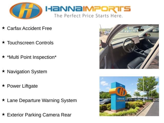 Why shop with Hanna Imports? We specialize in hand-selecting top-quality used cars, trucks, and SUVs for drivers across Raleigh, Durham, Cary, Chapel Hill, and the greater Triangle area of North Carolina. Our massive selection of 1,000+ vehicles on our Raleigh lot is carefully curated to include the most sought-after models, all priced below market value. We believe in transparency and efficiency—our vehicles are aggressively priced from the start, which means no haggling, no hassle, and no wasted time. The price you see is our absolute best price. Whether you're coming from Wake Forest, Apex, Garner, or anywhere in central NC, we’re committed to making your car-buying experience smooth, affordable, and enjoyable. Come see why Hanna Imports is one of the most trusted used car dealerships in North Carolina! Used Tesla Model Y in Raleigh. Used Tesla Model Y in North Carolina, Model Y Long Range, AWD, Exterior Parking Camera Rear, Lane Departure Warning System, Navigation System, Power Liftgate, 15 Speakers, 4-Wheel Disc Brakes, 5 Seat Interior, 9.0 Axle Ratio, ABS brakes, Air Conditioning, Alloy wheels, Auto High-beam Headlights, Auto tilt-away steering wheel, Auto-dimming door mirrors, Auto-dimming Rear-View mirror, Automatic temperature control, Brake assist, Bumpers: body-color, Compass, Delay-off headlights, Driver door bin, Driver vanity mirror, Dual front impact airbags, Dual front side impact airbags, Electronic Stability Control, Four wheel independent suspension, Front anti-roll bar, Front Bucket Seats, Front Center Armrest, Front dual zone A/C, Front fog lights, Front reading lights, Fully automatic headlights, Genuine wood dashboard insert, Heated door mirrors, Heated front seats, Heated rear seats, Heated steering wheel, Illuminated entry, Knee airbag, Low tire pressure warning, Memory seat, Occupant sensing airbag, Outside temperature display, Overhead airbag, Passenger door bin, Passenger vanity mirror, Power door mirrors, Power driver seat, Power passenger seat, Power steering, Power windows, Premium Audio System, Premium Seat Trim, Radio data system, Rain sensing wipers, Rear reading lights, Rear seat center armrest, Rear window defroster, Remote keyless entry, Security system, Speed control, Speed-sensing steering, Split folding rear seat, Steering wheel memory, Steering wheel mounted A/C controls, Steering wheel mounted audio controls, Telescoping steering wheel, Tilt steering wheel, Traction control, Trip computer, Variably intermittent wipers, and Wheels: 19 x 9.5 Gemini.