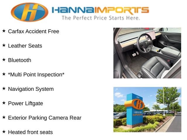 Why shop with Hanna Imports? We specialize in hand-selecting top-quality used cars, trucks, and SUVs for drivers across Raleigh, Durham, Cary, Chapel Hill, and the greater Triangle area of North Carolina. Our massive selection of 1,000+ vehicles on our Raleigh lot is carefully curated to include the most sought-after models, all priced below market value. We believe in transparency and efficiency—our vehicles are aggressively priced from the start, which means no haggling, no hassle, and no wasted time. The price you see is our absolute best price. Whether you're coming from Wake Forest, Apex, Garner, or anywhere in central NC, we’re committed to making your car-buying experience smooth, affordable, and enjoyable. Come see why Hanna Imports is one of the most trusted used car dealerships in North Carolina! Used Tesla Model Y in Raleigh. Used Tesla Model Y in North Carolina, Model Y Performance, AWD, Exterior Parking Camera Rear, Heated front seats, Navigation System, Power Liftgate, 15 Speakers, 4-Wheel Disc Brakes, 5 Seat Interior, 9.0 Axle Ratio, ABS brakes, Air Conditioning, Alloy wheels, Auto High-beam Headlights, Auto tilt-away steering wheel, Auto-dimming door mirrors, Auto-dimming Rear-View mirror, Automatic temperature control, Brake assist, Bumpers: body-color, Compass, Delay-off headlights, Driver door bin, Driver vanity mirror, Dual front impact airbags, Dual front side impact airbags, Electronic Stability Control, Four wheel independent suspension, Front anti-roll bar, Front Bucket Seats, Front Center Armrest, Front dual zone A/C, Front fog lights, Front reading lights, Fully automatic headlights, Genuine wood dashboard insert, Heated door mirrors, Heated rear seats, Heated steering wheel, Illuminated entry, Knee airbag, Lane Departure Warning System, Low tire pressure warning, Memory seat, Occupant sensing airbag, Outside temperature display, Overhead airbag, Passenger door bin, Passenger vanity mirror, Power door mirrors, Power driver seat, Power passenger seat, Power steering, Power windows, Premium Audio System, Premium Seat Trim, Radio data system, Rain sensing wipers, Rear reading lights, Rear seat center armrest, Rear window defroster, Remote keyless entry, Security system, Speed control, Speed-sensing steering, Split folding rear seat, Spoiler, Steering wheel memory, Steering wheel mounted A/C controls, Steering wheel mounted audio controls, Telescoping steering wheel, Tilt steering wheel, Traction control, Trip computer, Variably intermittent wipers, and Wheels: 21 x 9.5 Fr & 21 x 10.5 Rr Uberturbine.