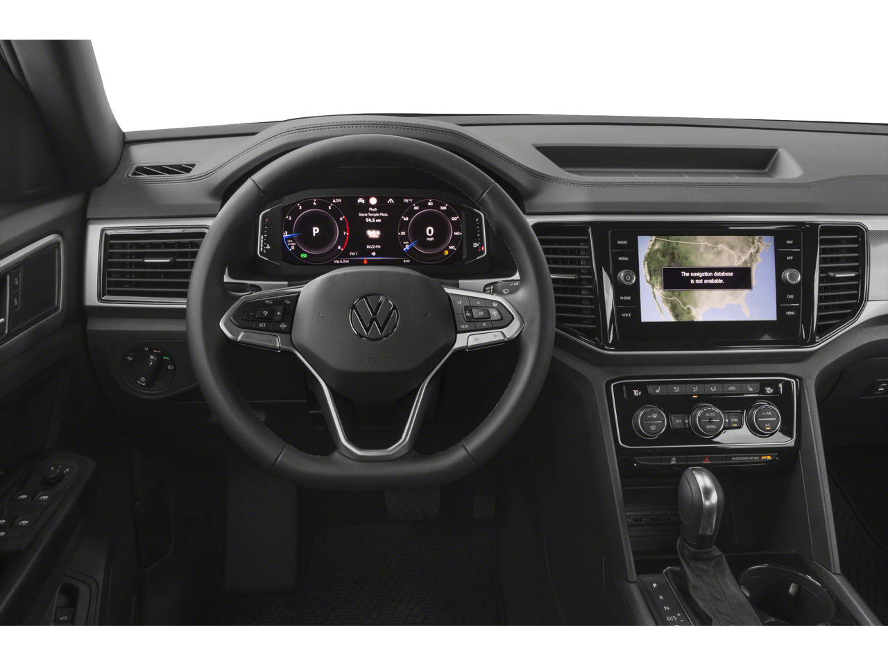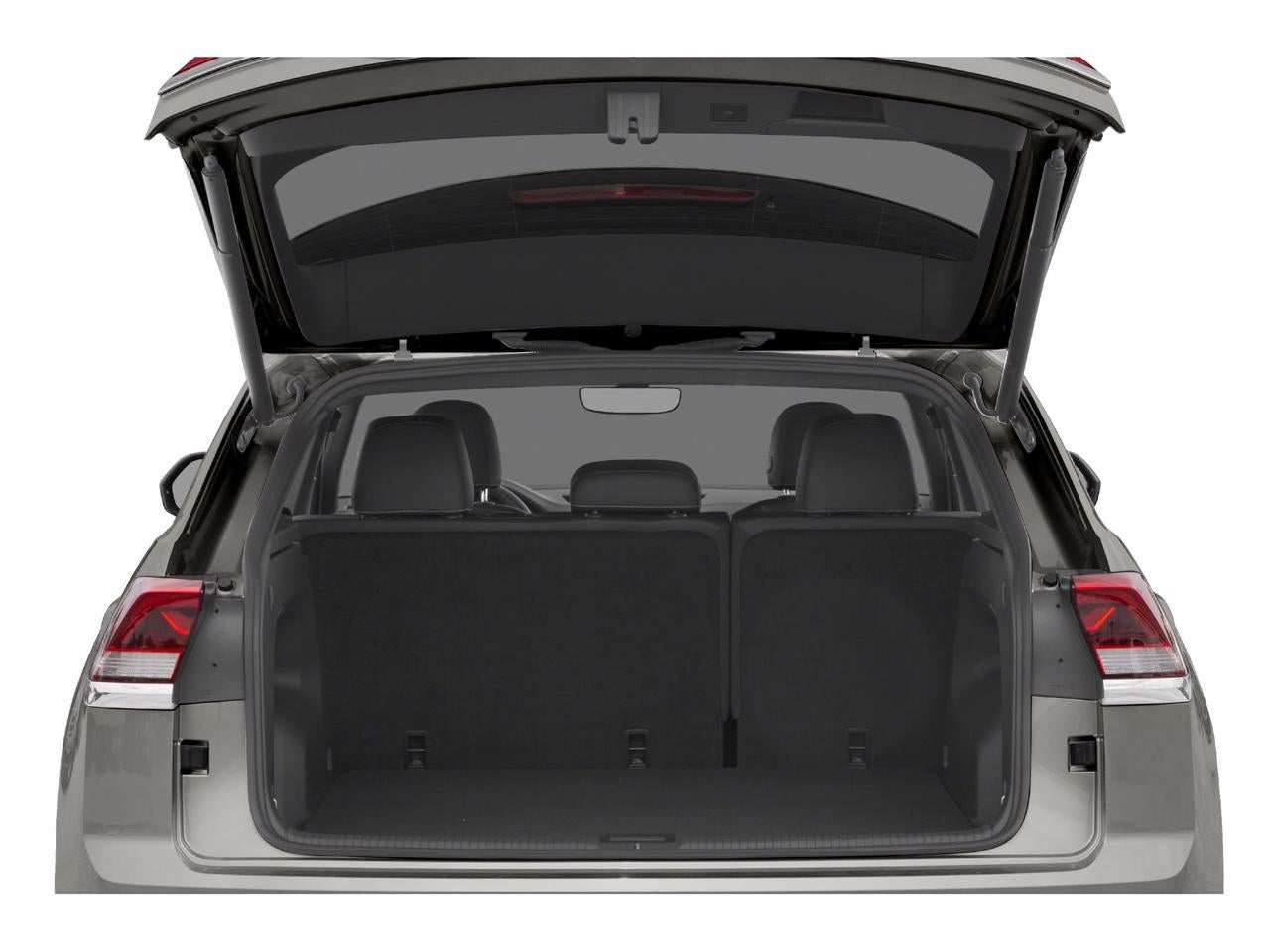 Equipped with 3.60 Axle Ratio, 4-Wheel Disc Brakes, 6 Speakers, ABS brakes, Active Blind Spot Monitor, Air Conditioning, Alloy wheels, AM/FM radio: SiriusXM with 360L, Auto High-beam Headlights, Auto-dimming Rear-View mirror, Automatic temperature control, Brake assist, Bumpers: body-color, Compass, Delay-off headlights, Driver door bin, Driver vanity mirror, Dual front impact airbags, Dual front side impact airbags, Electronic Stability Control, Emergency communication system: VW Car-Net services (capabilities require enrollment or subscription), Exterior Parking Camera Rear, Four wheel independent suspension, Frameless Self-Dimming Rearview Mirror, Front anti-roll bar, Front Bucket Seats, Front Center Armrest, Front dual zone A/C, Front fog lights, Front reading lights, Fully automatic headlights, Heated Comfort Front Bucket Seats, Heated door mirrors, Heated front seats, Heated steering wheel, Heavy Duty Trunk Liner w/VW CarGo Blocks, Illuminated entry, Leather Shift Knob, Low tire pressure warning, Memory seat, Navigation System, Occupant sensing airbag, Outside temperature display, Overhead airbag, Overhead console, Panic alarm, Passenger door bin, Passenger vanity mirror, Perforated V-Tex Leatherette Seating Surfaces, Power door mirrors, Power driver seat, Power Liftgate, Power moonroof, Power passenger seat, Power steering, Power windows, Privacy Cover, Radio data system, Radio: MIB3 Discover Media w/8 Touchscreen Navigation, Rain sensing wipers, Rear anti-roll bar, Rear reading lights, Rear seat center armrest, Rear window defroster, Rear window wiper, Remote keyless entry, Roof rack: rails only, Rubber Mats Kit, Security system, Speed control, Speed-sensing steering, Split folding rear seat, Spoiler, Standard Suspension, Steering wheel mounted audio controls, Tachometer, Telescoping steering wheel, Tilt steering wheel, Traction control, Trip computer, Turn signal indicator mirrors, Variably intermittent wipers, and Wheels: 20 5-Spoke Silver Alloy (V71)