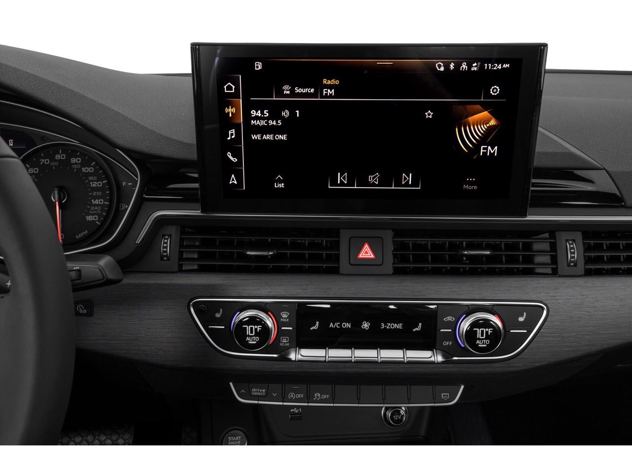 Equipped with 10 Speakers, 4-Wheel Disc Brakes, ABS brakes, Air Conditioning, Alloy wheels, AM/FM radio, Anti-whiplash front head restraints, Auto High-beam Headlights, Auto-dimming Rear-View mirror, Automatic temperature control, Brake assist, Bumpers: body-color, Compass, Delay-off headlights, Driver door bin, Driver vanity mirror, Dual front impact airbags, Dual front side impact airbags, Electronic Stability Control, Emergency communication system: Audi connect CARE, Exterior Parking Camera Rear, Four wheel independent suspension, Front anti-roll bar, Front Bucket Seats, Front Center Armrest, Front dual zone A/C, Front fog lights, Front reading lights, Garage door transmitter: HomeLink, Genuine wood console insert, Genuine wood dashboard insert, Genuine wood door panel insert, Heated door mirrors, Heated Front Bucket Seats, Heated front seats, Illuminated entry, Knee airbag, Leather Seating Surfaces, Leather Shift Knob, Leather steering wheel, Low tire pressure warning, Occupant sensing airbag, Outside temperature display, Overhead airbag, Overhead console, Panic alarm, Passenger door bin, Passenger vanity mirror, Power adjustable front head restraints, Power door mirrors, Power driver seat, Power Liftgate, Power moonroof, Power passenger seat, Power steering, Power windows, Radio data system, Radio: Audi Sound System, Rain sensing wipers, Rear air conditioning, Rear anti-roll bar, Rear reading lights, Rear seat center armrest, Rear window defroster, Remote keyless entry, Speed control, Speed-sensing steering, Speed-Sensitive Wipers, Split folding rear seat, Steering wheel mounted audio controls, Tachometer, Telescoping steering wheel, Tilt steering wheel, Traction control, Trip computer, Turn signal indicator mirrors, Variably intermittent wipers, and Wheels: 18 Double-Spoke-Star Design.