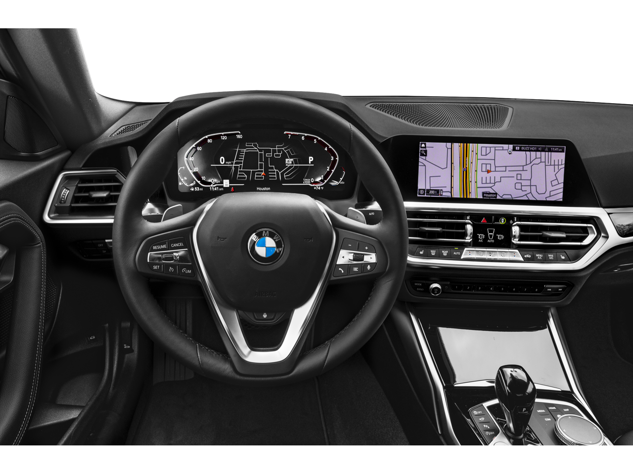 Equipped with Connected Package Pro, Premium Package (DISC) (Adaptive Full LED Lights, Ambient Lighting, Automatic High Beams, Comfort Access Keyless Entry, Head-Up Display, Heated Front Seats, Heated Steering Wheel, Live Cockpit Pro w/Navi, Moonroof, and Universal Garage-Door Opener), Navigation, Navigation System, 10 Speakers, 4-Wheel Disc Brakes, ABS brakes, Air Conditioning, Alloy wheels, AM/FM radio: SiriusXM with 360L, Apple CarPlay & Android Auto Compatibility, Auto-dimming door mirrors, Auto-dimming Rear-View mirror, Automatic temperature control, BMW Assist eCall, BMW TeleServices, Brake assist, Bumpers: body-color, ConnectedDrive Services, Delay-off headlights, Driver door bin, Driver vanity mirror, Dual front impact airbags, Dual front side impact airbags, Electronic Stability Control, Emergency communication system: BMW Assist eCall, Exterior Parking Camera Rear, Four wheel independent suspension, Front anti-roll bar, Front Bucket Seats, Front Center Armrest, Front dual zone A/C, Front reading lights, Front Sport Seats, Fully automatic headlights, Heated door mirrors, Hi-Fi Sound System, Illuminated entry, Knee airbag, Leather Shift Knob, Low tire pressure warning, Memory seat, Occupant sensing airbag, Outside temperature display, Overhead airbag, Panic alarm, Passenger door bin, Passenger vanity mirror, Perforated SensaTec Upholstery, Power door mirrors, Power driver seat, Power Front Seats, Power passenger seat, Power steering, Power windows, Radio data system, Radio: AM/FM Audio System, Rain sensing wipers, Rear air conditioning, Rear anti-roll bar, Rear window defroster, Remote keyless entry, Security system, SiriusXM w/360L, Speed control, Speed-sensing steering, Speed-Sensitive Wipers, Split folding rear seat, Sport steering wheel, Steering wheel mounted audio controls, Tachometer, Telescoping steering wheel, Tilt steering wheel, Traction control, Trip computer, Turn signal indicator mirrors, Variably intermittent wipers, and Wheels: 18 x 7.5 V-Spoke Bi-Color (Style 780)
