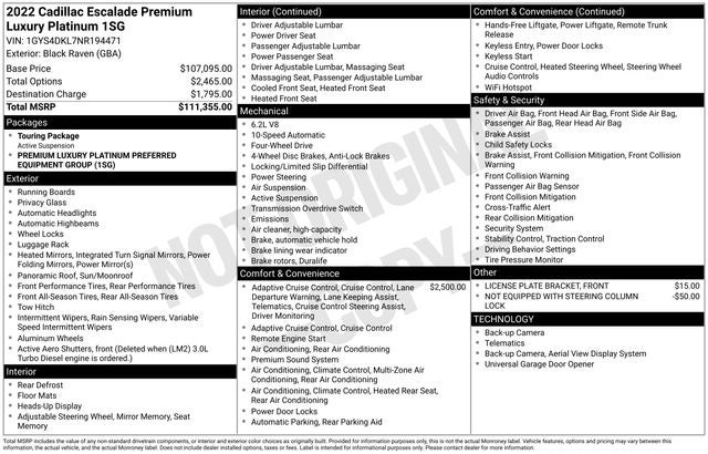 2022 Cadillac Escalade Premium Luxury Platinum Black Raven
