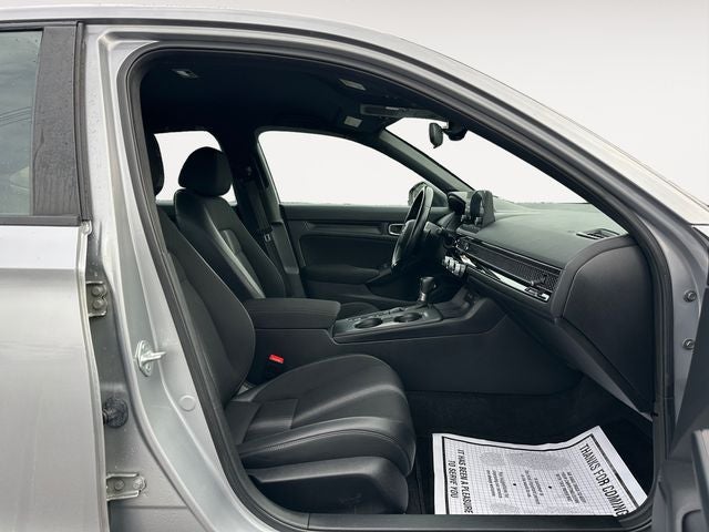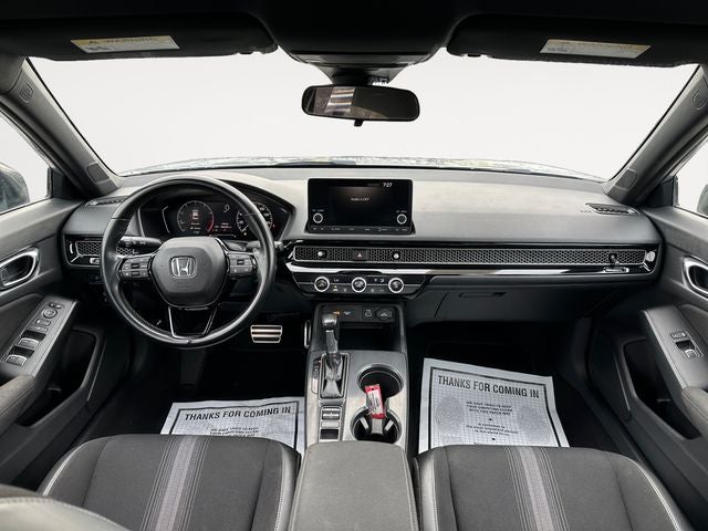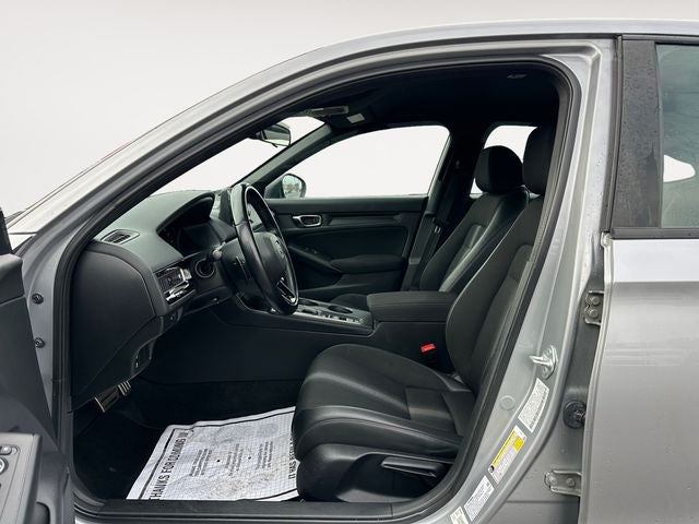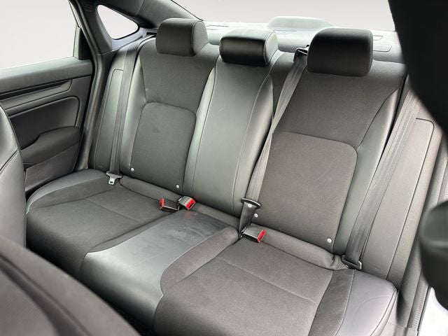 Equipped with Black Cloth, 4-Wheel Disc Brakes, 8 Speakers, ABS brakes, Adaptive Cruise Control: Adaptive Cruise Control (ACC) with Low-Speed Follow, Air Conditioning, Alloy wheels, AM/FM radio, Apple CarPlay/Android Auto, Auto High-beam Headlights, Automatic temperature control, Brake assist, Bumpers: body-color, Cloth Seat Trim, Delay-off headlights, Driver door bin, Driver vanity mirror, Dual front impact airbags, Dual front side impact airbags, Electronic Stability Control, Emergency communication system: HondaLink, Exterior Parking Camera Rear, Forward collision: Collision Mitigation Braking System (CMBS) + FCW mitigation, Four wheel independent suspension, Front anti-roll bar, Front Bucket Seats, Front Center Armrest, Front reading lights, Fully automatic headlights, Illuminated entry, Knee airbag, Leather Shift Knob, Leather steering wheel, Low tire pressure warning, Occupant sensing airbag, Outside temperature display, Overhead airbag, Panic alarm, Passenger door bin, Passenger vanity mirror, Power door mirrors, Power steering, Power windows, Radio data system, Radio: 180-Watt AM/FM Audio System, Rear anti-roll bar, Rear side impact airbag, Rear window defroster, Remote keyless entry, Security system, Speed control, Speed-sensing steering, Steering wheel mounted audio controls, Tachometer, Telescoping steering wheel, Tilt steering wheel, Traction control, Trip computer, and Wheels: 18 Gloss Black Alloy.