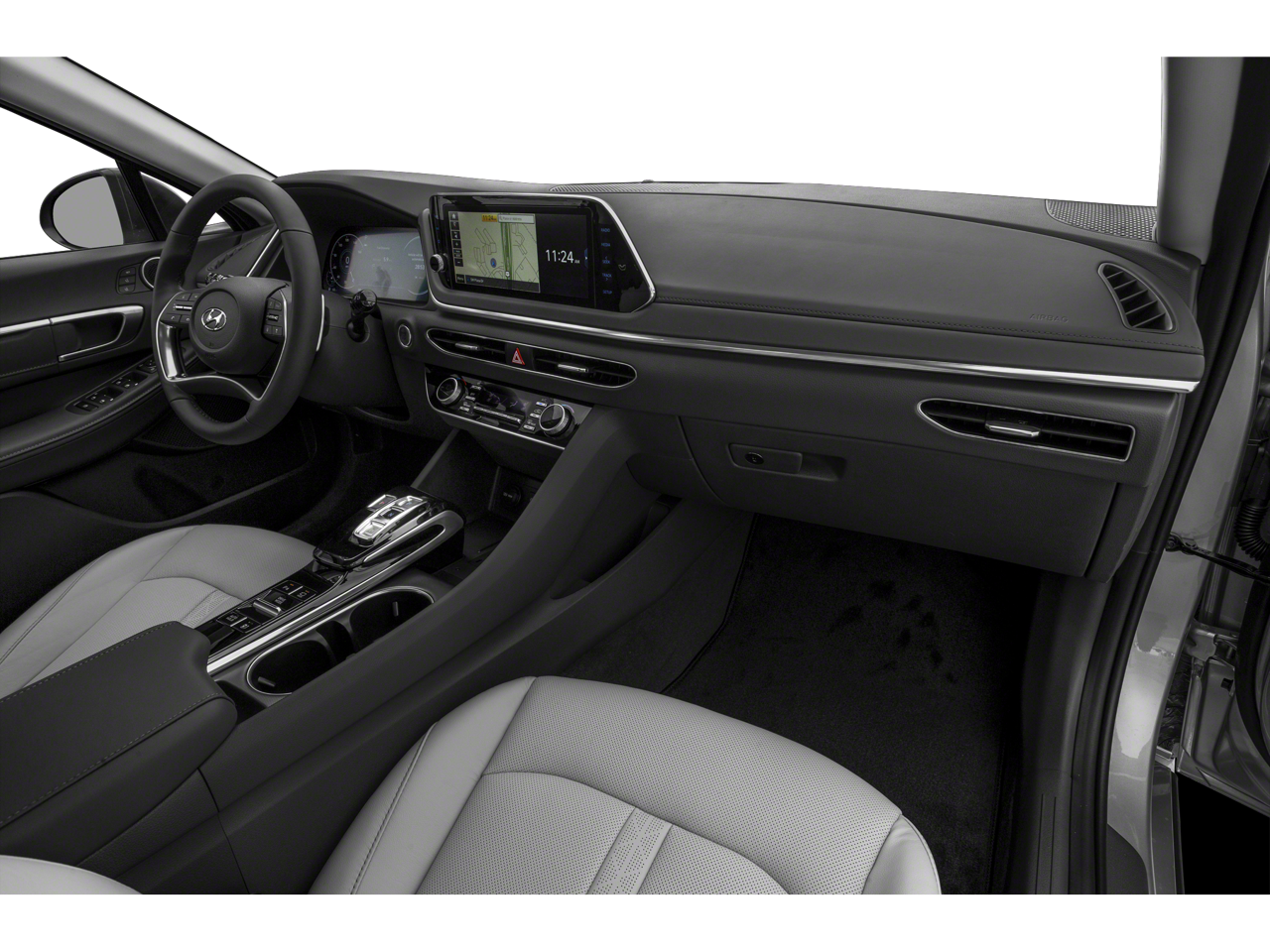 Equipped with Option Group 01, Dark Gray Leather, 12 Speakers, 18 x 7.5J Aluminum Alloy Wheels, 4-Wheel Disc Brakes, ABS brakes, Air Conditioning, Alloy wheels, AM/FM radio: SiriusXM, Apple CarPlay & Android Auto, Auto High-beam Headlights, Auto-dimming Rear-View mirror, Automatic temperature control, Brake assist, Bumpers: body-color, Cargo Net, Carpeted Floor Mats, Delay-off headlights, Driver door bin, Driver vanity mirror, Dual front impact airbags, Dual front side impact airbags, Electronic Stability Control, Emergency communication system: Blue Link Connected Car Service (3-year complimentary subscription), Four wheel independent suspension, Front anti-roll bar, Front Bucket Seats, Front Center Armrest, Front dual zone A/C, Front reading lights, Fully automatic headlights, Garage door transmitter: HomeLink, Heads-Up Display, Heated door mirrors, Heated front seats, Heated steering wheel, Heated/Ventilated Front Bucket Seats, Illuminated entry, Knee airbag, Leather Seating Surfaces, Leather steering wheel, Low tire pressure warning, Memory seat, Navigation System, Occupant sensing airbag, Outside temperature display, Overhead airbag, Overhead console, Panic alarm, Passenger door bin, Passenger vanity mirror, Power door mirrors, Power driver seat, Power moonroof, Power passenger seat, Power steering, Power windows, Radio data system, Radio: AM/FM/MP3/HD/SiriusXM Display Audio w/Nav, Rain sensing wipers, Rear anti-roll bar, Rear seat center armrest, Rear side impact airbag, Rear window defroster, Remote keyless entry, Security system, Speed control, Speed-sensing steering, Speed-Sensitive Wipers, Split folding rear seat, Steering wheel mounted audio controls, Tachometer, Telescoping steering wheel, Tilt steering wheel, Traction control, Trip computer, Turn signal indicator mirrors, Variably intermittent wipers, Ventilated front seats, and Wheel Locks.