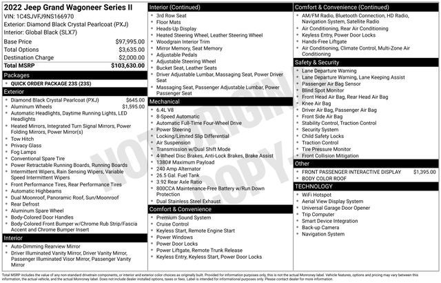 2022 Jeep Grand Wagoneer Series II Diamond Black Crystal Pearlcoat Odometer is 17485 miles below market average!