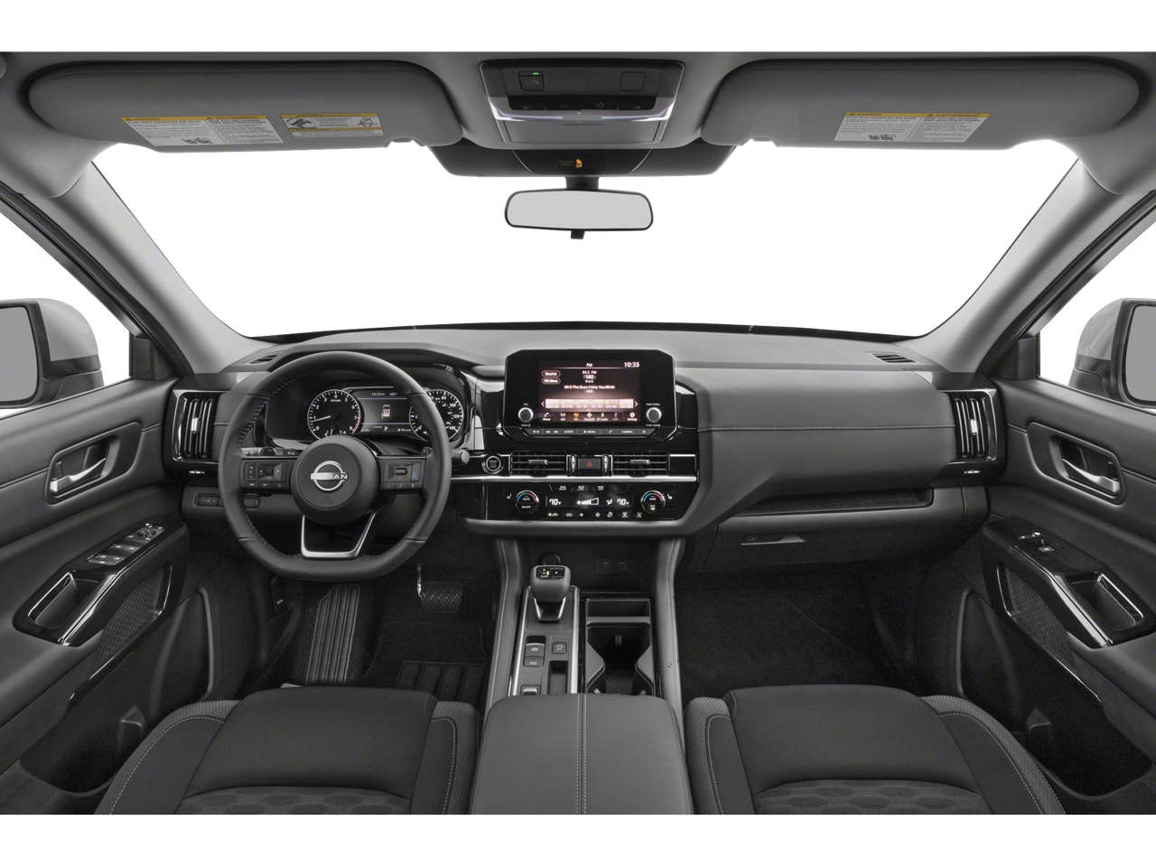 Equipped with 4WD, 18 Painted Alloy Wheels, 3rd row seats: bench, 4-Wheel Disc Brakes, 6 Speakers, ABS brakes, Air Conditioning, Alloy wheels, AM/FM radio: SiriusXM, Auto High-beam Headlights, Automatic temperature control, Axle Ratio: TBD, Bench Seat Carpeted Floor Mats (Set of 4), Black Splash Guards (Set of 4), Brake assist, Bumpers: body-color, Cloth Seating Surfaces, Cross Bars, Delay-off headlights, Driver door bin, Driver vanity mirror, Dual front impact airbags, Dual front side impact airbags, Electronic Stability Control, Emergency communication system: NissanConnect Services, Four wheel independent suspension, Front anti-roll bar, Front Bucket Seats, Front Center Armrest, Front dual zone A/C, Front reading lights, Fully automatic headlights, Heated door mirrors, Heated Front Bucket Seats, Heated front seats, Illuminated entry, Knee airbag, Leather steering wheel, Low tire pressure warning, NissanConnect featuring Apple CarPlay and Android Auto, Occupant sensing airbag, Outside temperature display, Overhead airbag, Overhead console, Panic alarm, Passenger door bin, Passenger vanity mirror, Power door mirrors, Power driver seat, Power steering, Power windows, Radio data system, Radio: AM/FM Audio System w/NissanConnect, Rear air conditioning, Rear anti-roll bar, Rear Parking Sensors, Rear reading lights, Rear seat center armrest, Rear side impact airbag, Rear window defroster, Rear window wiper, Reclining 3rd row seat, Remote keyless entry, Security system, Speed control, Speed-sensing steering, Split folding rear seat, Spoiler, Steering wheel mounted audio controls, Tachometer, Telescoping steering wheel, Tilt steering wheel, Traction control, Trip computer, Turn signal indicator mirrors, and Variably intermittent wipers.