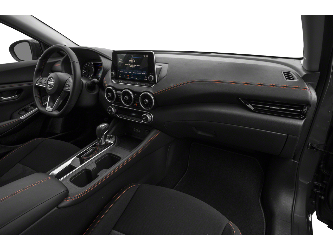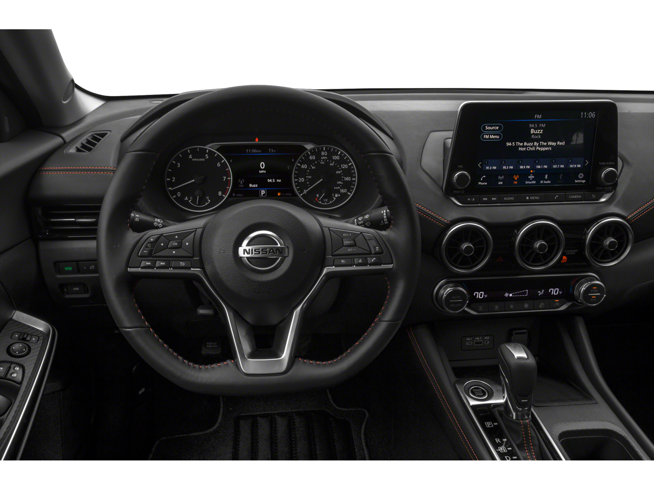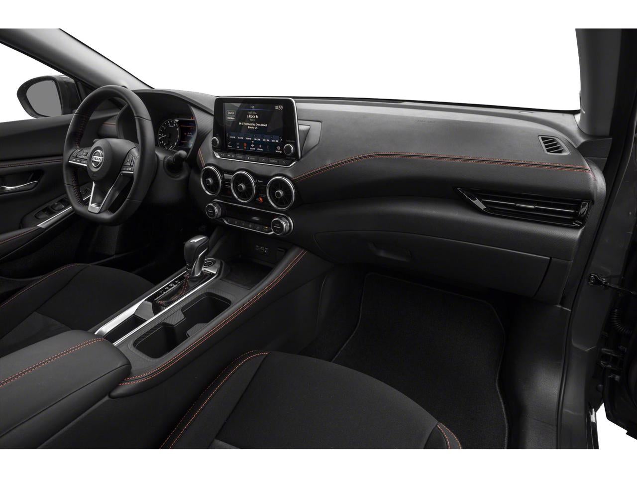 Equipped with CVT with Xtronic, Sport Cloth, 18 Alloy Wheels, 4-Wheel Disc Brakes, 6 Speakers, ABS brakes, Air Conditioning, Alloy wheels, AM/FM radio: SiriusXM, Auto High-beam Headlights, Automatic temperature control, Blind Spot Warning, Brake assist, Bumpers: body-color, Carpeted Floor Mats w/Trunk Mat, Clear Rear Bumper Protector, Delay-off headlights, Door Sill Plates, Driver door bin, Driver vanity mirror, Dual front impact airbags, Dual front side impact airbags, Electronic Stability Control, Four wheel independent suspension, Front anti-roll bar, Front Bucket Seats, Front Center Armrest, Front dual zone A/C, Front fog lights, Front reading lights, Fully automatic headlights, Heated door mirrors, Illuminated entry, Knee airbag, Leather Shift Knob, Low tire pressure warning, NissanConnect featuring Apple CarPlay and Android Auto, Occupant sensing airbag, Outside temperature display, Overhead airbag, Overhead console, Panic alarm, Passenger door bin, Passenger vanity mirror, Power door mirrors, Power steering, Power windows, Radio data system, Radio: AM/FM w/RDS/MP3/Aux-In, Rear anti-roll bar, Rear Parking Sensors, Rear seat center armrest, Rear side impact airbag, Rear window defroster, Remote keyless entry, Security system, Speed control, Speed-sensing steering, Split folding rear seat, Spoiler, Sport Cloth Seat Trim, Steering wheel mounted audio controls, Tachometer, Telescoping steering wheel, Tilt steering wheel, Traction control, Trip computer, Turn signal indicator mirrors, and Variably intermittent wipers.