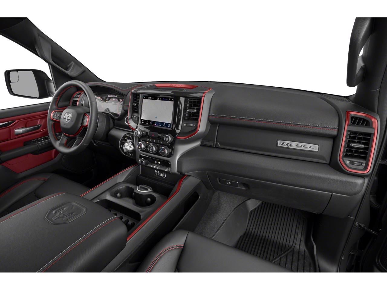 Equipped with Quick Order Package 25W Rebel, Rebel Level 1 Equipment Group (2nd Row In Floor Storage Bins, 4G LTE Wi-Fi Hot Spot, 8.4 Touchscreen Display, Apple CarPlay, Auto-Dimming Exterior Driver Mirror, Black Exterior Mirrors, Black Premium Power Mirrors, Bluetooth® Handsfree Phone & Audio, Connectivity - US/Canada, Convex Wide-Angle Mirror Insert, Exterior Mirrors Courtesy Lamps, Exterior Mirrors w/Heating Element, Exterior Mirrors w/Supplemental Signals, Foam Bottle Insert (Door Trim Panel), For Details, Visit DriveUconnect.com, Global Telematics Box Module (TBM), Google Android Auto, GPS Antenna Input, Heated Front Seats, Heated Steering Wheel, Integrated Center Stack Radio, Power Adjustable Pedals, Power-Folding Mirrors, Radio: Uconnect 5 W w/8.4 Display, Rear Dome w/On/Off Switch Lamp, Rear Window Defroster, SiriusXM Radio Service, SiriusXM Satellite Radio, Sun Visors w/Illuminated Vanity Mirrors, Universal Garage Door Opener, and USB Host Flip), 3.92 Rear Axle Ratio, 4 Way Front Headrests, 4-Wheel Disc Brakes, 48V Belt Starter Generator, 6 Speakers, ABS brakes, Air Conditioning, Alloy wheels, AM/FM radio: SiriusXM, Auto-dimming Rear-View mirror, Brake assist, Bucket Seats, Cloth/Vinyl Low Back Bucket Seats, Compass, Delay-off headlights, Driver door bin, Dual front impact airbags, Dual front side impact airbags, Electric Shift-On-Demand Transfer Case, Electronic Stability Control, Emergency communication system: SiriusXM Guardian, Front anti-roll bar, Front Bucket Seats, Front Center Armrest w/Storage, Front fog lights, Front License Plate Bracket, Front reading lights, Front Seat Back Map Pockets, Front wheel independent suspension, Full Length Upgraded Floor Console, Fully automatic headlights, Heated door mirrors, Illuminated entry, Integrated Voice Command w/Bluetooth®, Leather steering wheel, Low tire pressure warning, Occupant sensing airbag, Outside temperature display, Overhead airbag, Overhead console, Panic alarm, ParkView Rear Back-Up Camera, Passenger door bin, Passenger vanity mirror, Power 2-Way Driver Lumbar Adjust, Power door mirrors, Power driver seat, Power steering, Power windows, Radio data system, Ra