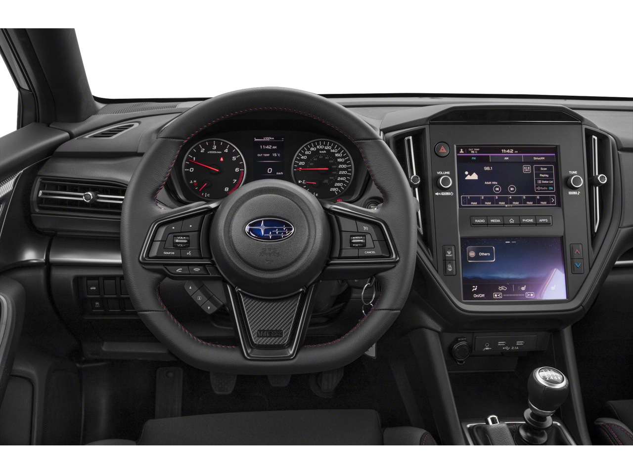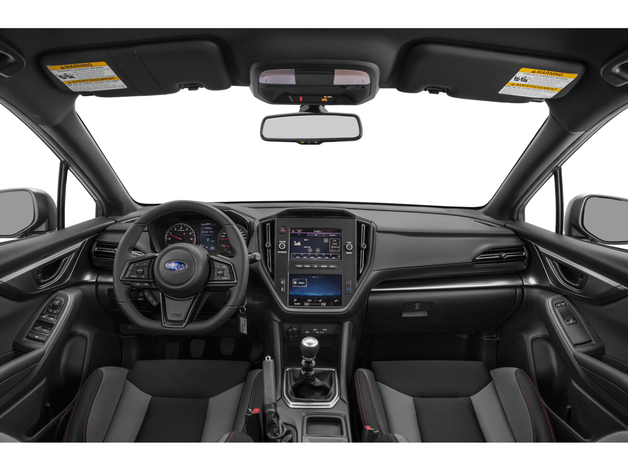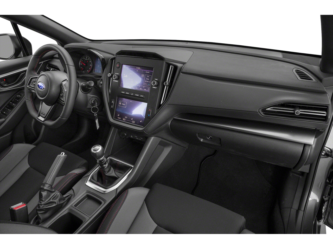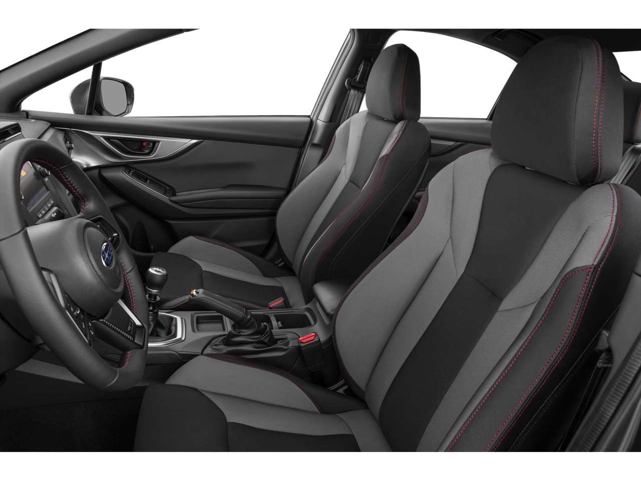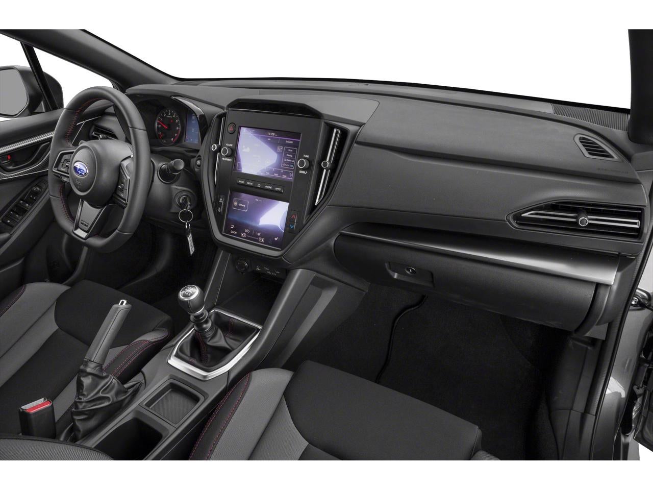 Equipped with Standard Model, 4-Wheel Disc Brakes, 6 Speakers, ABS brakes, Air Conditioning, All-Weather Floor Liners, Alloy wheels, AM/FM radio: SiriusXM, Auto High-beam Headlights, Auto-Dimming Mirror w/Compass & HomeLink, Auto-dimming Rear-View mirror, Automatic temperature control, Brake assist, Bumpers: body-color, Cloth Upholstery w/Red Stitching, Driver door bin, Driver vanity mirror, Dual front impact airbags, Dual front side impact airbags, Electronic Stability Control, Exterior Parking Camera Rear, Four wheel independent suspension, Front anti-roll bar, Front Bucket Seats, Front Center Armrest, Front reading lights, Fully automatic headlights, Illuminated entry, Knee airbag, Leather Shift Knob, Leather steering wheel, LED Upgrade - Map & Dome Lights, Low tire pressure warning, Occupant sensing airbag, Outside temperature display, Overhead airbag, Overhead console, Panic alarm, Passenger door bin, Passenger vanity mirror, Performance Design Front Bucket Seats, Power door mirrors, Power steering, Power windows, Radio data system, Radio: Subaru STARLINK Dual 7 Multimedia Plus Sys, Rear anti-roll bar, Rear window defroster, Remote keyless entry, Security system, Speed control, Speed-sensing steering, Split folding rear seat, Sport steering wheel, STARLINK/Apple CarPlay/Android Auto, Steering wheel mounted audio controls, Tachometer, Telescoping steering wheel, Tilt steering wheel, Traction control, Trip computer, Variably intermittent wipers, and Wheels: 17 x 8 Gray Finish Aluminum Alloy.