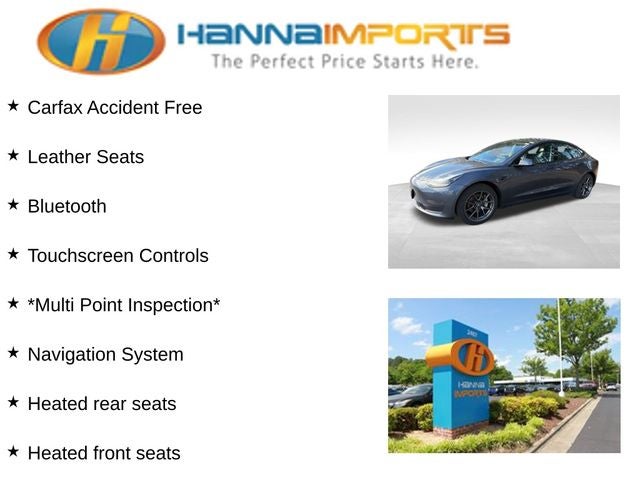 Why shop with Hanna Imports? We specialize in hand-selecting top-quality used cars, trucks, and SUVs for drivers across Raleigh, Durham, Cary, Chapel Hill, and the greater Triangle area of North Carolina. Our massive selection of 1,000+ vehicles on our Raleigh lot is carefully curated to include the most sought-after models, all priced below market value. We believe in transparency and efficiency—our vehicles are aggressively priced from the start, which means no haggling, no hassle, and no wasted time. The price you see is our absolute best price. Whether you're coming from Wake Forest, Apex, Garner, or anywhere in central NC, we’re committed to making your car-buying experience smooth, affordable, and enjoyable. Come see why Hanna Imports is one of the most trusted used car dealerships in North Carolina! Used Tesla Model 3 in Raleigh. Used Tesla Model 3 in North Carolina, Heated front seats, Heated rear seats, Navigation System, 4-Wheel Disc Brakes, 8 Speakers, ABS brakes, Air Conditioning, Alloy wheels, Audio memory, Auto High-beam Headlights, Auto-dimming door mirrors, Auto-dimming Rear-View mirror, Automatic temperature control, Brake assist, Bumpers: body-color, Compass, Delay-off headlights, Driver door bin, Driver vanity mirror, Dual front impact airbags, Dual front side impact airbags, Electronic Stability Control, Exterior Parking Camera Rear, Four wheel independent suspension, Front anti-roll bar, Front Bucket Seats, Front Center Armrest, Front dual zone A/C, Front reading lights, Fully automatic headlights, Genuine wood dashboard insert, Heated door mirrors, Heated steering wheel, HVAC memory, Illuminated entry, Knee airbag, Lane Departure Warning System, Low tire pressure warning, Memory seat, Occupant sensing airbag, Outside temperature display, Overhead airbag, Passenger door bin, Passenger vanity mirror, Power door mirrors, Power driver seat, Power passenger seat, Power steering, Power windows, Premium Heated Front Bucket Seats, Premium Seat Trim, Radio data system, Radio: Upgraded Audio System, Rain sensing wipers, Rear reading lights, Rear seat center armrest, Rear window defroster, Security system, Speed control, Speed-sensing steering, Split folding rear seat, Steering wheel memory, Steering wheel mounted A/C controls, Steering wheel mounted audio controls, Telescoping steering wheel, Tilt steering wheel, Traction control, Trip computer, Variably intermittent wipers, and Wheels: 18 x 8.5 Aero.