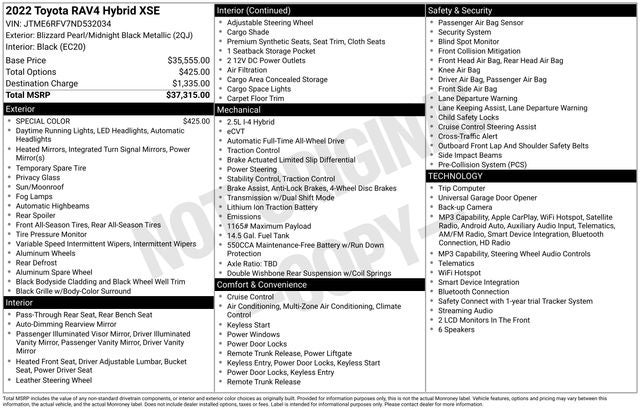 2022 Toyota RAV4 Hybrid XSE Blizzard Pearl 41/38 City/Highway MPG