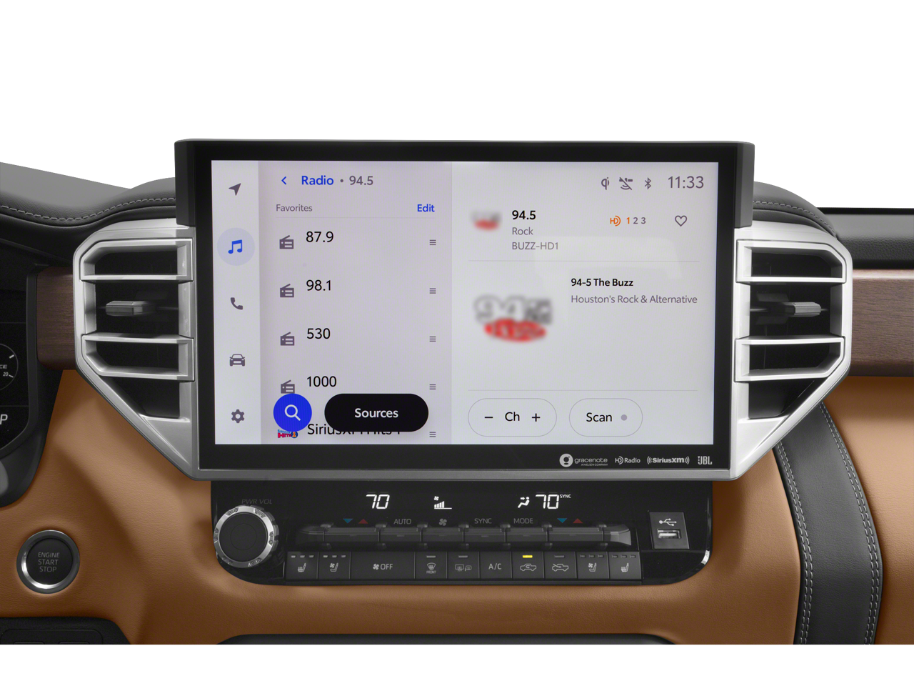 - Radio: AM/FM -inc: 14" touchscreen audio multimedia, Android Auto and Apple CarPlay compatible and SiriusXM w/3-month platinum plan trial subscription, See toyota.com/audio-multimedia for details, Connected services - Safety Connect w/1-year trial, remote connect w/1-year trial, drive connect w/1-year trial, service connect w/3-year trial, Wi-Fi connect w/up to 3 GB within 1-month trial, See toyota.com/connected-services for details