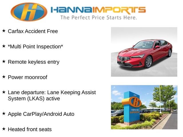 Why shop with Hanna Imports? We specialize in hand-selecting top-quality used cars, trucks, and SUVs for drivers across Raleigh, Durham, Cary, Chapel Hill, and the greater Triangle area of North Carolina. Our massive selection of 1,000+ vehicles on our Raleigh lot is carefully curated to include the most sought-after models, all priced below market value. We believe in transparency and efficiency—our vehicles are aggressively priced from the start, which means no haggling, no hassle, and no wasted time. The price you see is our absolute best price. Whether you're coming from Wake Forest, Apex, Garner, or anywhere in central NC, we’re committed to making your car-buying experience smooth, affordable, and enjoyable. Come see why Hanna Imports is one of the most trusted used car dealerships in North Carolina! Used Acura Integra in Raleigh. Used Acura Integra in North Carolina, Apple CarPlay/Android Auto, Heated front seats, Lane departure: Lane Keeping Assist System (LKAS) active, Power moonroof, Remote keyless entry, 17 Alloy Wheels, 4-Wheel Disc Brakes, 8 Speakers, ABS brakes, Air Conditioning, Alloy wheels, AM/FM radio, Auto High-beam Headlights, Auto-dimming Rear-View mirror, Automatic temperature control, Brake assist, Bumpers: body-color, Compass, Delay-off headlights, Driver door bin, Driver vanity mirror, Dual front impact airbags, Dual front side impact airbags, Electronic Stability Control, Four wheel independent suspension, Front anti-roll bar, Front Bucket Seats, Front Center Armrest, Front dual zone A/C, Front reading lights, Fully automatic headlights, Heated door mirrors, Heated Front Bucket Seats, Illuminated entry, Knee airbag, Leather Shift Knob, Leatherette-Trimmed Seating Surfaces, Low tire pressure warning, Occupant sensing airbag, Outside temperature display, Overhead airbag, Overhead console, Panic alarm, Passenger door bin, Passenger vanity mirror, Power door mirrors, Power driver seat, Power steering, Power windows, Radio data system, Radio: Acura Premium Audio System, Rear anti-roll bar, Rear seat center armrest, Rear side impact airbag, Rear window defroster, Security system, Speed control, Speed-sensing steering, Speed-Sensitive Wipers, Split folding rear seat, Steering wheel mounted audio controls, Tachometer, Telescoping steering wheel, Tilt steering wheel, Traction control, Trip computer, and Variably intermittent wipers.