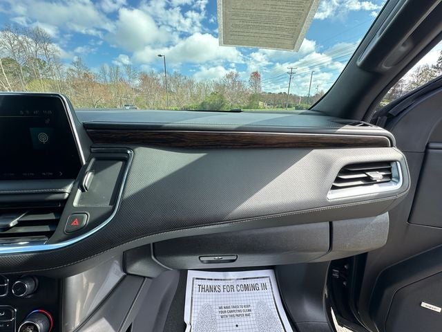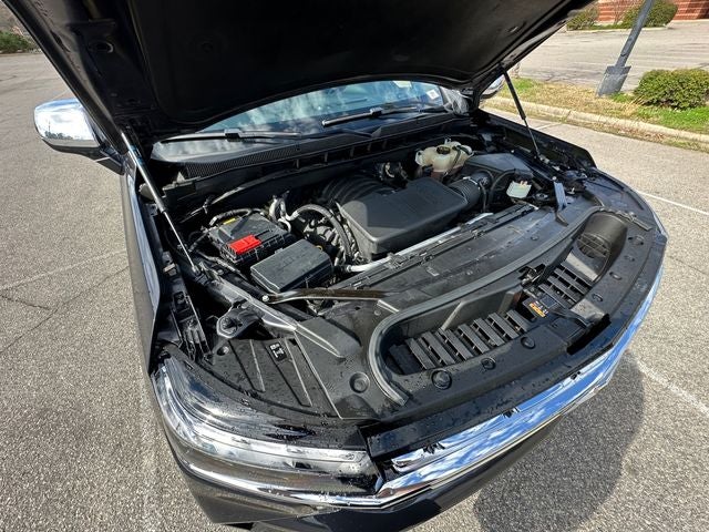 Equipped with Preferred Equipment Group 1LZ (1st & 2nd Row Color-Keyed Carpeted Floor Mats, 3rd Row 60/40 Power-Folding Split-Bench, Auto-Dimming Inside Rear-View Mirror, Bose 10-Speaker Surround w/CenterPoint, Bright Front & Rear Door Sill Plates, Chrome Door Handles w/Body-Color Strip, Chrome Mirror Caps, Color-Keyed Carpeting Floor Covering, Driver & Front Outboard Passenger Airbags, Dual Exhaust System, Enhanced Driver Information Center, Floor Console, Hands-Free Rear Power Programmable Liftgate, Heated & Ventilated Driver & Front Passenger Seats, Heated 2nd Row Outboard Seats, Heated Driver & Front Passenger Seats, Heated Steering Wheel, Infotainment Display, Lane Change Alert w/Side Blind Zone Alert, LED Daytime Running Lamps, Memory Settings, Outside Heated Power-Adjustable Mirrors, Power Release 2nd Row Bucket Seats, Power Tilt & Telescopic Steering Column, Rear Cross Traffic Alert, Remote Start, Safety Alert Seat, SiriusXM Radio w/360L, Universal Home Remote, Wireless Charging, and Wrapped Steering Wheel), Navigation System, 10 Speakers, 20 x 9 Polished Aluminum Wheels, 3.23 Rear Axle Ratio, 3rd row seats: split-bench, 4-Wheel Disc Brakes, ABS brakes, Adaptive suspension, Air Conditioning, Alloy wheels, AM/FM radio: SiriusXM with 360L, Apple CarPlay/Android Auto, Auto High-beam Headlights, Auto-dimming door mirrors, Auto-dimming Rear-View mirror, Auto-leveling suspension, Automatic temperature control, Brake assist, Bumpers: body-color, Compass, Delay-off headlights, Deleted 3 Years of Remote Access, Driver door bin, Driver vanity mirror, Dual front impact airbags, Dual front side impact airbags, Electronic Stability Control, Emergency communication system: OnStar and Chevrolet connected services capable, Four wheel independent suspension, Front anti-roll bar, Front Bucket Seats, Front Center Armrest, Front dual zone A/C, Front reading lights, Fully automatic headlights, Garage door transmitter, Heated door mirrors, Heated front seats, Heated rear seats, Heated steering whe
