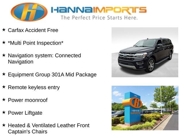 Why shop with Hanna Imports? We specialize in hand-selecting top-quality used cars, trucks, and SUVs for drivers across Raleigh, Durham, Cary, Chapel Hill, and the greater Triangle area of North Carolina. Our massive selection of 1,000+ vehicles on our Raleigh lot is carefully curated to include the most sought-after models, all priced below market value. We believe in transparency and efficiency—our vehicles are aggressively priced from the start, which means no haggling, no hassle, and no wasted time. The price you see is our absolute best price. Whether you're coming from Wake Forest, Apex, Garner, or anywhere in central NC, we’re committed to making your car-buying experience smooth, affordable, and enjoyable. Come see why Hanna Imports is one of the most trusted used car dealerships in North Carolina! Used Ford Expedition Max in Raleigh. Used Ford Expedition Max in North Carolina, Equipment Group 301A Mid Package, Expedition Max Limited, Heated & Ventilated Leather Front Captain's Chairs, Navigation system: Connected Navigation, Power Liftgate, Power moonroof, Remote keyless entry, 12 Speakers, 2nd Row Power-Folding 40/20/40 Leather Bench Seat, 3.31 Axle Ratio, 3rd row seats: split-bench, 4-Wheel Disc Brakes, ABS brakes, Adjustable pedals, Air Conditioning, Alloy wheels, AM/FM radio: SiriusXM with 360L, Auto High-beam Headlights, Auto-dimming door mirrors, Auto-dimming Rear-View mirror, Automatic temperature control, Brake assist, Bumpers: body-color, Compass, Delay-off headlights, Driver door bin, Driver vanity mirror, Dual front impact airbags, Dual front side impact airbags, Electronic Stability Control, Emergency communication system: SYNC 4 911 Assist, Exterior Parking Camera Rear, Four wheel independent suspension, Front anti-roll bar, Front Bucket Seats, Front Center Armrest, Front dual zone A/C, Front fog lights, Front License Plate Bracket, Front reading lights, Fully automatic headlights, Garage door transmitter, Heated door mirrors, Heated front seats, Heated rear seats, Heated steering wheel, Illuminated entry, Leather steering wheel, Low tire pressure warning, Memory seat, Occupant sensing airbag, Outside temperature display, Overhead airbag, Overhead console, Panic alarm, Passenger door bin, Passenger vanity mirror, Pedal memory, Power door mirrors, Power driver seat, Power passenger seat, Power steering, Power windows, Radio data system, Radio: B&O Sound System by Bang & Olufsen, Rain sensing wipers, Rear air conditioning, Rear anti-roll bar, Rear reading lights, Rear window defroster, Rear window wiper, Reclining 3rd row seat, Second Row Power Windows Removal, Security system, SiriusXM w/360L, Speed control, Speed-sensing steering, Speed-Sensitive Wipers, Split folding rear seat, Spoiler, Steering wheel memory, Steering wheel mounted audio controls, SYNC 4 w/Enhanced Voice Recognition, Tachometer, Telescoping steering wheel, Tilt steering wheel, Traction control, Trip computer, Turn signal indicator mirrors, Variably intermittent wipers, Ventilated front seats, Voltmeter, and Wheels: 20 Bright Machined Aluminum.