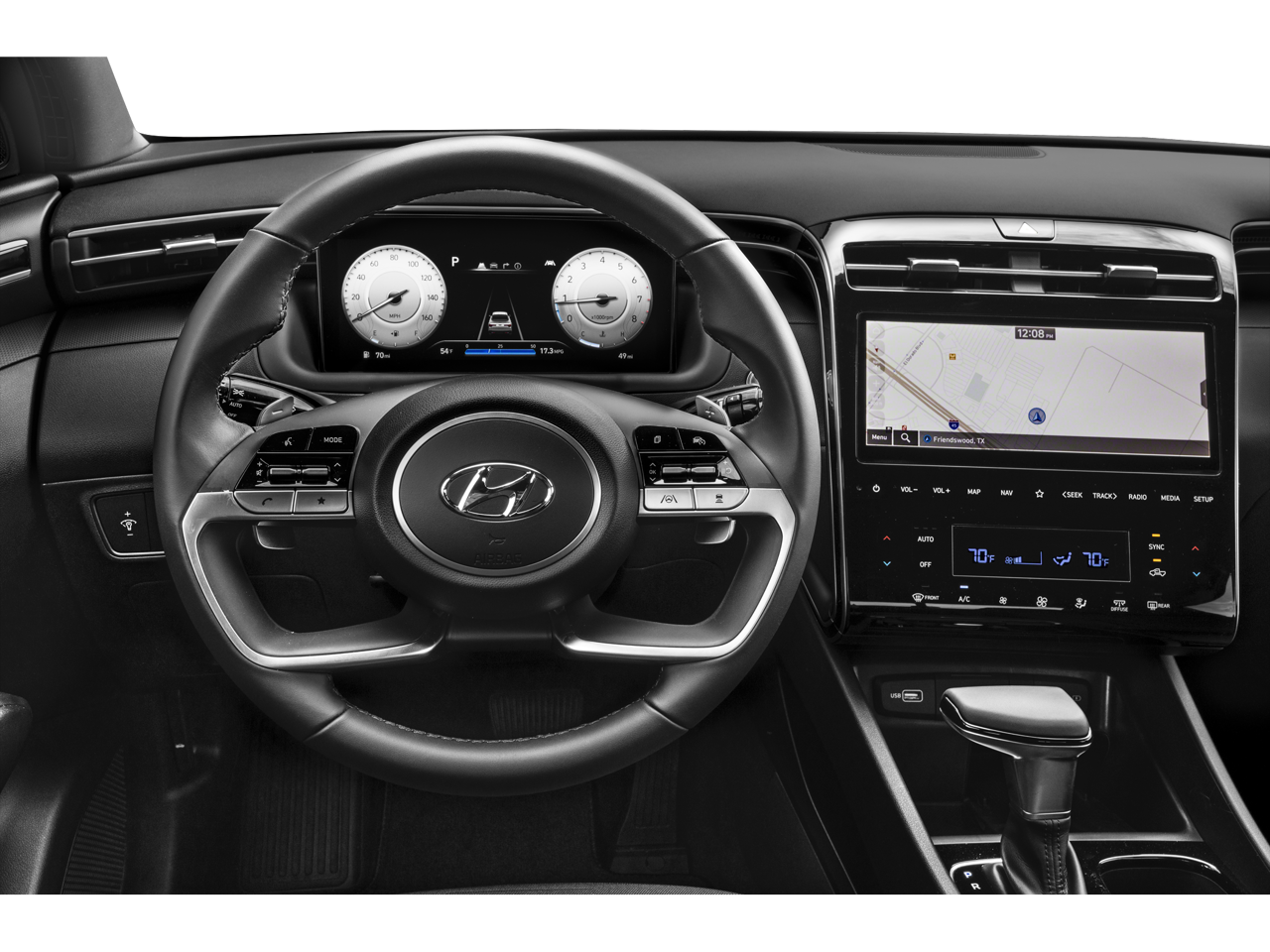 Equipped with Option Group 01, Navigation System, 18 x 7.5J Alloy Wheels, 3.316 Axle Ratio, 4-Wheel Disc Brakes, 6 Speakers, ABS brakes, Air Conditioning, Alloy wheels, AM/FM radio: SiriusXM, Apple CarPlay & Android Auto, Auto High-beam Headlights, Auto-dimming Rear-View mirror, Auto-leveling suspension, Automatic temperature control, Brake assist, Bumpers: body-color, Carpeted Floor Mats, Delay-off headlights, Driver door bin, Driver vanity mirror, Dual front impact airbags, Dual front side impact airbags, Electronic Stability Control, Emergency communication system: Blue Link Connected Car Service (3-year complimentary subscription), Exterior Parking Camera Rear, First Aid Kit, Four wheel independent suspension, Front anti-roll bar, Front Bucket Seats, Front Center Armrest, Front dual zone A/C, Front reading lights, Fully automatic headlights, Heated door mirrors, Heated Front Bucket Seats, Heated front seats, Illuminated entry, Leather Shift Knob, Low tire pressure warning, Occupant sensing airbag, Outside temperature display, Overhead airbag, Overhead console, Panic alarm, Passenger door bin, Passenger vanity mirror, Power door mirrors, Power driver seat, Power moonroof, Power steering, Power windows, Radio data system, Radio: AM/FM/HD Audio System, Rear anti-roll bar, Rear step bumper, Rear window defroster, Remote keyless entry, Security system, Speed control, Speed-sensing steering, Split folding rear seat, Spoiler, Stain & Odor Resistant Cloth Seat Trim, Steering wheel mounted audio controls, Tachometer, Telescoping steering wheel, Tilt steering wheel, Tow Hitch, Traction control, Trip computer, Turn signal indicator mirrors, and Variably intermittent wipers.