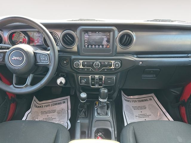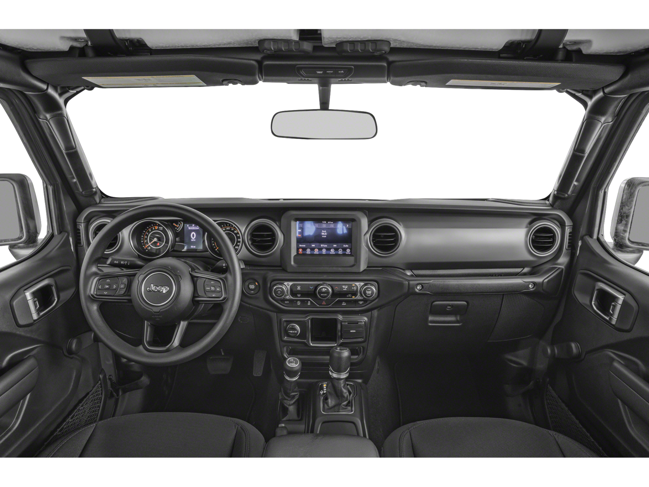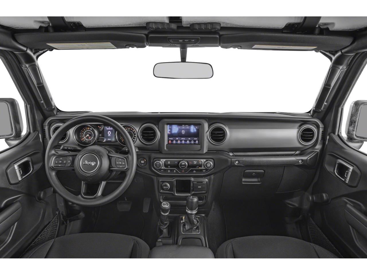Equipped with Convenience Group (Daytime Running Lamp System and Universal Garage Door Opener), Max Tow Package w/4.10 Axle Ratio (240 Amp Alternator, 4.10 Rear Axle Ratio, Anti-Spin Differential Rear Axle, Class IV Receiver Hitch, Dana M210 Wide Front Axle, Dana M220 Wide Rear Axle, Heavy-Duty Engine Cooling, and Trailer Hitch Zoom), Popular Equipment Package (Black 3-Piece Hard Top and Freedom Panel Storage Bag), Quick Order Package 24S Sport S (Automatic Headlamps, Deep Tint Sunscreen Windows, Front 1-Touch Down Power Windows, Normal Duty Plus Suspension, Power Heated Mirrors, Power Tailgate Lock, Premium Wrapped Steering Wheel, Remote Keyless Entry, Security Alarm, Speed Sensitive Power Locks, Sport S, Sun Visors w/Illuminated Vanity Mirrors, and Wheels: 17 x 7.5 Tech Silver Aluminum), Trailer Tow Package, 4-Wheel Disc Brakes, 4G LTE Wi-Fi Hot Spot, 8 Speakers, ABS brakes, Air Conditioning, AM/FM radio, Apple CarPlay, Apple CarPlay/Android Auto, Brake assist, Cloth Low-Back Bucket Seats, Compass, Delay-off headlights, Driver door bin, Driver vanity mirror, Dual front impact airbags, Dual front side impact airbags, Electronic Stability Control, Emergency communication system, Front anti-roll bar, Front Bucket Seats, Front Center Armrest w/Storage, Front fog lights, Front reading lights, Google Android Auto, GPS Antenna Input, Integrated Center Stack Radio, Integrated roll-over protection, Integrated Voice Command w/Bluetooth®, Low tire pressure warning, MOPAR All-Weather Slush Mats, Normal Duty Suspension, Occupant sensing airbag, Outside temperature display, ParkView Rear Back-Up Camera, Passenger door bin, Passenger vanity mirror, Power steering, Radio data system, Radio: Uconnect 4 w/7 Display, Rear anti-roll bar, Rear reading lights, Side Steps, Speed control, Split folding rear seat, Steering wheel mounted audio controls, Tachometer, Telescoping steering wheel, Tilt steering wheel, Traction control, Trip computer, USB Host Flip, Variably intermittent wipers, Wheels: 17 x 7.5 Black Steel Styled, and Wheels: 17 x 7.5 Gloss Black Aluminum.