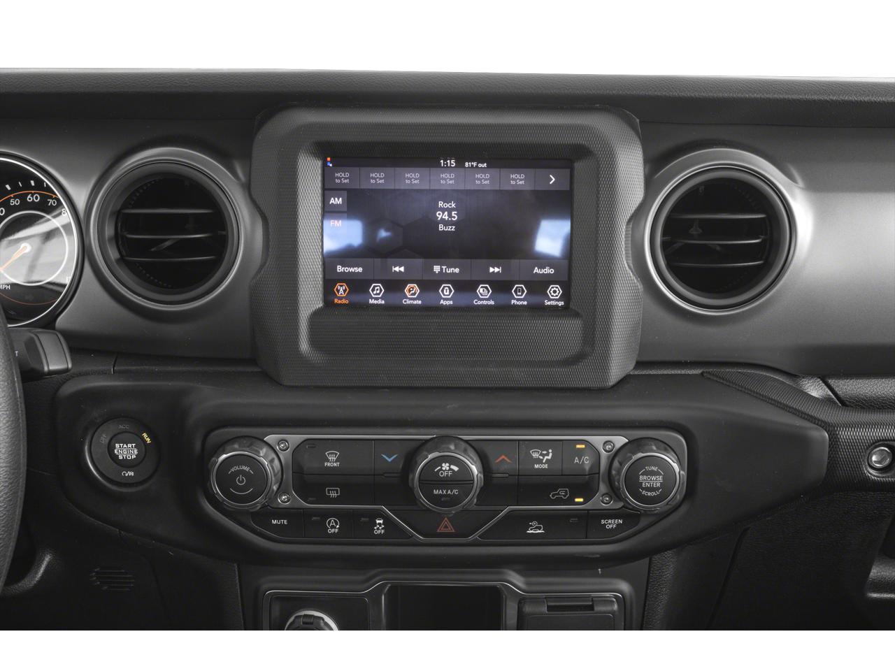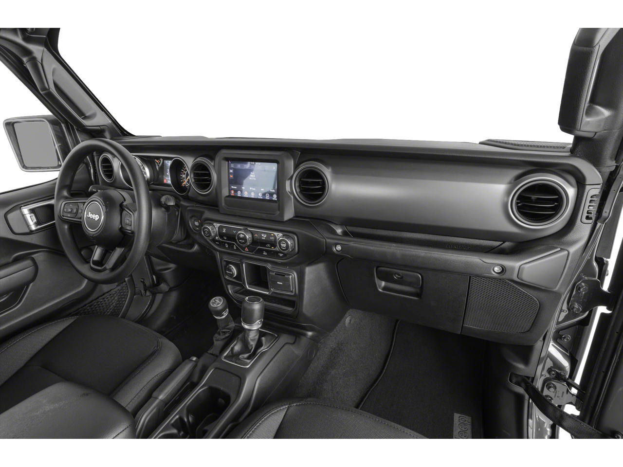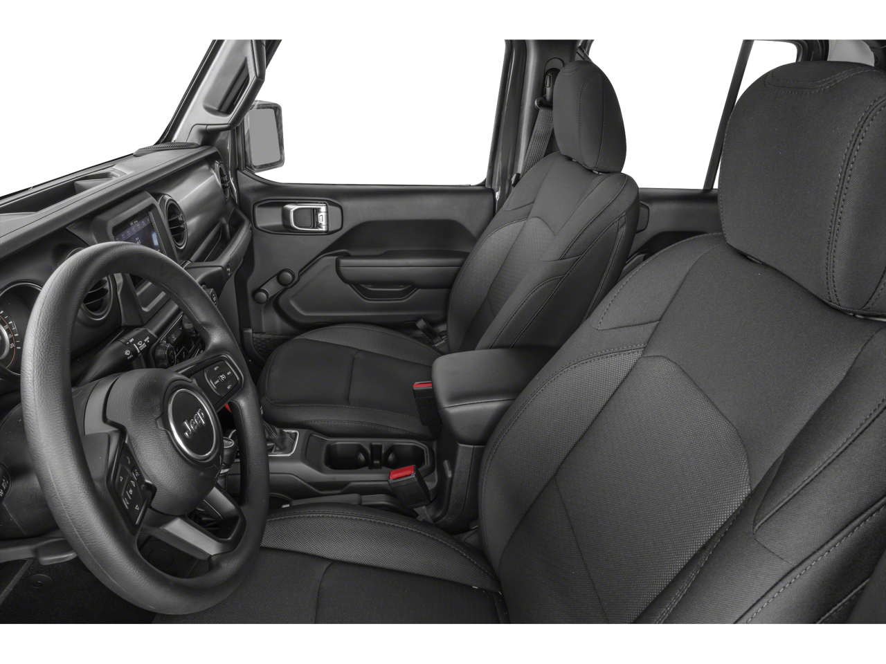 Equipped with Convenience Group (Daytime Running Lamp System and Universal Garage Door Opener), Max Tow Package w/4.10 Axle Ratio (240 Amp Alternator, 4.10 Rear Axle Ratio, Anti-Spin Differential Rear Axle, Class IV Receiver Hitch, Dana M210 Wide Front Axle, Dana M220 Wide Rear Axle, Heavy-Duty Engine Cooling, and Trailer Hitch Zoom), Popular Equipment Package (Black 3-Piece Hard Top and Freedom Panel Storage Bag), Quick Order Package 24S Sport S (Automatic Headlamps, Deep Tint Sunscreen Windows, Front 1-Touch Down Power Windows, Normal Duty Plus Suspension, Power Heated Mirrors, Power Tailgate Lock, Premium Wrapped Steering Wheel, Remote Keyless Entry, Security Alarm, Speed Sensitive Power Locks, Sport S, Sun Visors w/Illuminated Vanity Mirrors, and Wheels: 17 x 7.5 Tech Silver Aluminum), Trailer Tow Package, 4-Wheel Disc Brakes, 4G LTE Wi-Fi Hot Spot, 8 Speakers, ABS brakes, Air Conditioning, AM/FM radio, Apple CarPlay, Apple CarPlay/Android Auto, Brake assist, Cloth Low-Back Bucket Seats, Compass, Delay-off headlights, Driver door bin, Driver vanity mirror, Dual front impact airbags, Dual front side impact airbags, Electronic Stability Control, Emergency communication system, Front anti-roll bar, Front Bucket Seats, Front Center Armrest w/Storage, Front fog lights, Front reading lights, Google Android Auto, GPS Antenna Input, Integrated Center Stack Radio, Integrated roll-over protection, Integrated Voice Command w/Bluetooth®, Low tire pressure warning, MOPAR All-Weather Slush Mats, Normal Duty Suspension, Occupant sensing airbag, Outside temperature display, ParkView Rear Back-Up Camera, Passenger door bin, Passenger vanity mirror, Power steering, Radio data system, Radio: Uconnect 4 w/7 Display, Rear anti-roll bar, Rear reading lights, Side Steps, Speed control, Split folding rear seat, Steering wheel mounted audio controls, Tachometer, Telescoping steering wheel, Tilt steering wheel, Traction control, Trip computer, USB Host Flip, Variably intermittent wipers, Wheels: 17 x 7.5 Black Steel Styled, and Wheels: 17 x 7.5 Gloss Black Aluminum.