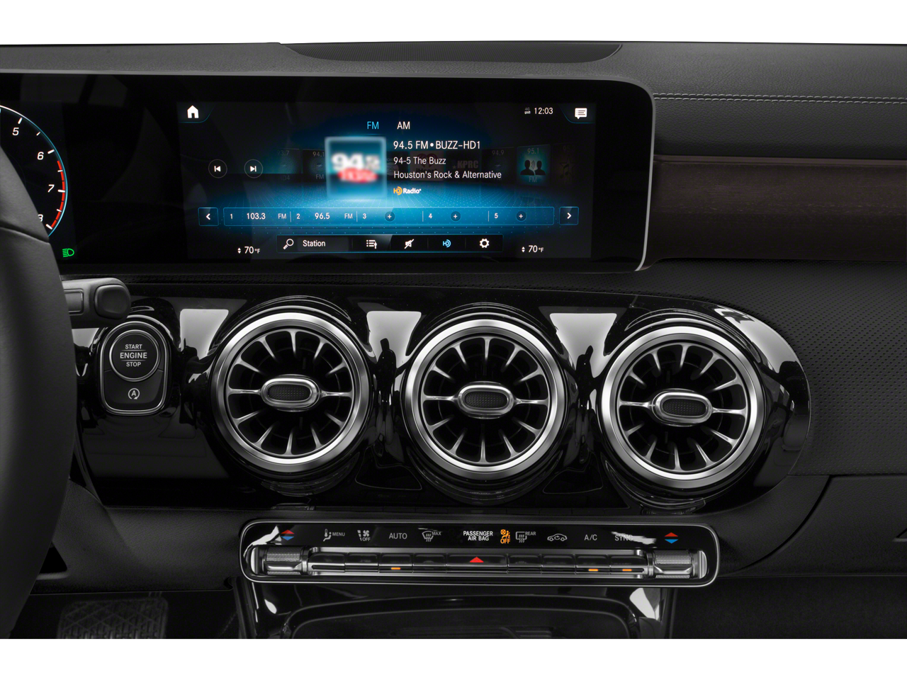 Equipped with 18 Multi-Spoke Alloy Wheels, 4-Wheel Disc Brakes, 8 Speakers, ABS brakes, Air Conditioning, Alloy wheels, AM/FM radio, Apple CarPlay®/Android Auto®, Automatic temperature control, Brake assist, Bumpers: body-color, Child-Seat-Sensing Airbag, Delay-off headlights, Driver door bin, Driver vanity mirror, Dual front impact airbags, Dual front side impact airbags, Electronic Stability Control, Emergency communication system: eCall Emergency System, Exterior Parking Camera Rear, Four wheel independent suspension, Front anti-roll bar, Front Bucket Seats, Front Center Armrest, Front dual zone A/C, Front reading lights, Front Sport Seats, Fully automatic headlights, Heated door mirrors, Illuminated entry, Knee airbag, Low tire pressure warning, MB-Tex Leatherette Seat Trim, Memory seat, Occupant sensing airbag, Outside temperature display, Overhead airbag, Overhead console, Panic alarm, Passenger door bin, Passenger vanity mirror, Power door mirrors, Power driver seat, Power moonroof, Power passenger seat, Power steering, Power windows, Radio data system, Radio: MBUX Multimedia System, Rain sensing wipers, Rear anti-roll bar, Rear fog lights, Rear reading lights, Rear seat center armrest, Rear window defroster, Remote keyless entry, Security system, Speed control, Speed-sensing steering, Split folding rear seat, Steering wheel mounted audio controls, Tachometer, Telescoping steering wheel, Tilt steering wheel, Traction control, Trip computer, Turn signal indicator mirrors, and Variably intermittent wipers.