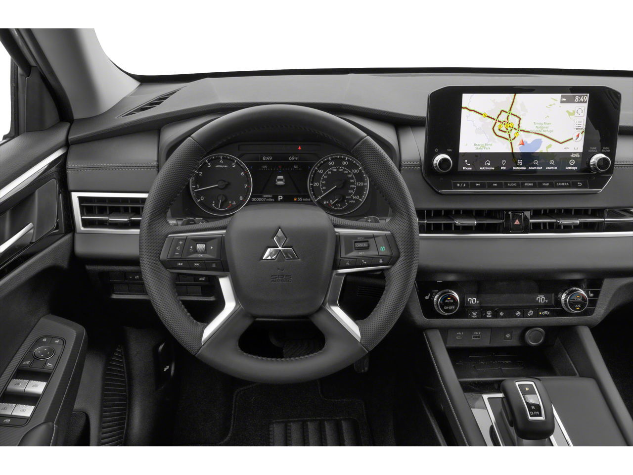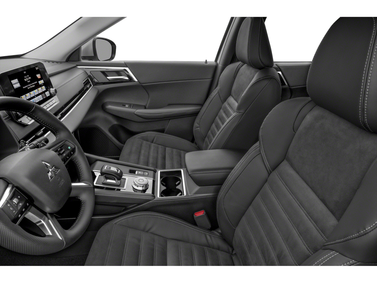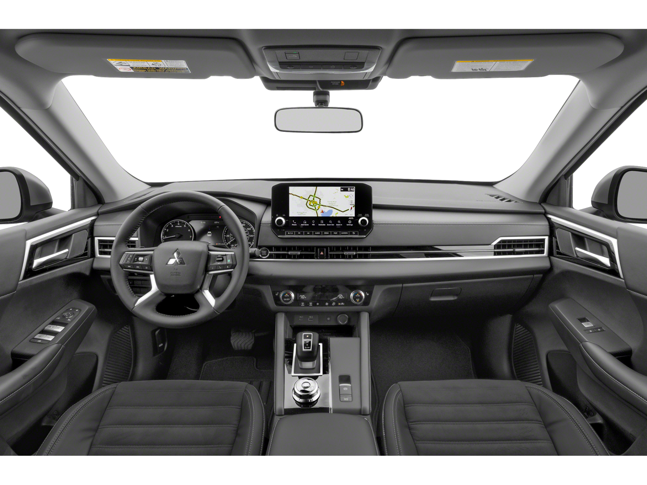 Equipped with 3rd row seats: split-bench, 4-Wheel Disc Brakes, 5.694 Axle Ratio, 6 Speakers, ABS brakes, Air Conditioning, Alloy wheels, AM/FM radio: SiriusXM, Android Auto & Apple CarPlay, Auto High-beam Headlights, Automatic temperature control, Brake assist, Bumpers: body-color, Driver door bin, Driver vanity mirror, Dual front impact airbags, Dual front side impact airbags, Electronic Stability Control, Emergency communication system: Mitsubishi Connect w/ 24-month trial, Exterior Parking Camera Rear, Four wheel independent suspension, Front anti-roll bar, Front Bucket Seats, Front Center Armrest w/Storage, Front dual zone A/C, Front fog lights, Front reading lights, Fully automatic headlights, Heated door mirrors, Heated Front Bucket Seats, Heated front seats, Illuminated entry, Knee airbag, Leather Shift Knob, Leather steering wheel, Low tire pressure warning, Navigation System, Occupant sensing airbag, Outside temperature display, Overhead airbag, Overhead console, Panic alarm, Passenger door bin, Passenger vanity mirror, Power door mirrors, Power driver seat, Power Liftgate, Power steering, Power windows, Radio data system, Radio: AM/FM 9.0 Navigation w/Smartphone Link, Rain sensing wipers, Rear anti-roll bar, Rear seat center armrest, Rear side impact airbag, Rear window defroster, Rear window wiper, Reclining 3rd row seat, Remote keyless entry, Security system, Speed control, Speed-Sensitive Wipers, Split folding rear seat, Spoiler, Steering wheel mounted audio controls, Synthetic Leather Seat Trim, Tachometer, Telescoping steering wheel, Tilt steering wheel, Traction control, Trip computer, Turn signal indicator mirrors, and Variably intermittent wipers.