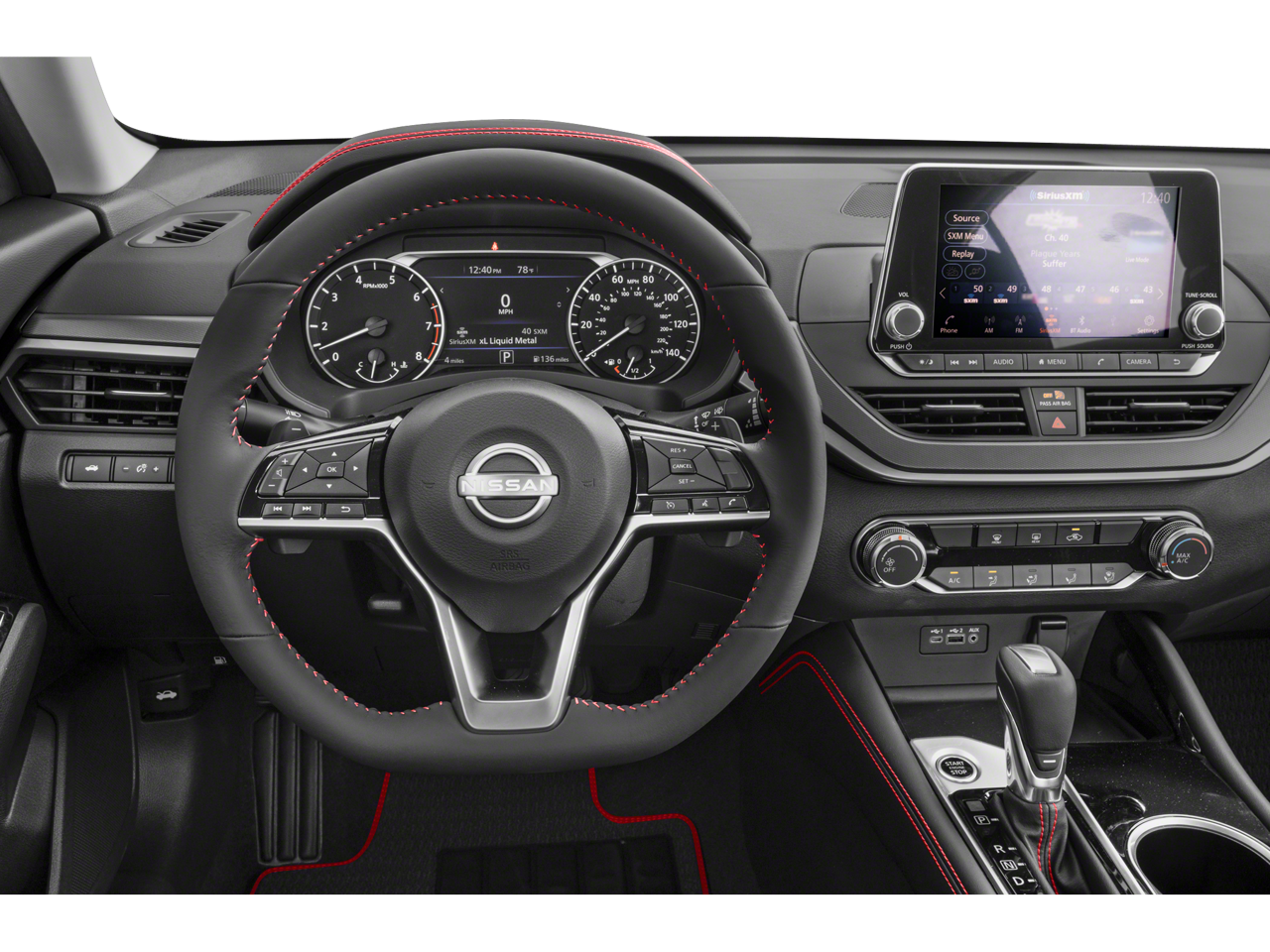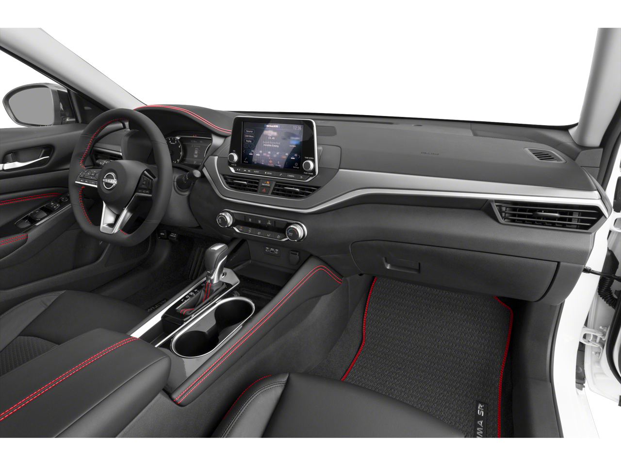 Equipped with CVT with Xtronic, 4-Wheel Disc Brakes, 6 Speakers, ABS brakes, Air Conditioning, Alloy wheels, AM/FM radio: SiriusXM, Auto High-beam Headlights, Blind Spot Warning, Body-Colored Splash Guards, Brake assist, Bumpers: body-color, Chrome Bumper Protector, Delay-off headlights, Driver door bin, Driver vanity mirror, Dual front impact airbags, Dual front side impact airbags, Electronic Stability Control, Four wheel independent suspension, Front anti-roll bar, Front Bucket Seats, Front Center Armrest, Front reading lights, Front Sport Bucket Seats, Fully automatic headlights, Illuminated entry, Knee airbag, Leather Shift Knob, Low tire pressure warning, NissanConnect featuring Apple CarPlay and Android Auto, Occupant sensing airbag, Outside temperature display, Overhead airbag, Overhead console, Panic alarm, Passenger door bin, Passenger vanity mirror, Power door mirrors, Power driver seat, Power steering, Power windows, Radio data system, Radio: AM/FM Audio System, Rear anti-roll bar, Rear Parking Sensors, Rear reading lights, Rear seat center armrest, Rear side impact airbag, Rear window defroster, Remote keyless entry, Security system, Speed control, Speed-sensing steering, Speed-Sensitive Wipers, Split folding rear seat, Sport Seat Trim, SR Floor Mats/Trunk Mat/Hideaway Nets, Steering wheel mounted audio controls, Tachometer, Telescoping steering wheel, Tilt steering wheel, Traction control, Trip computer, Trunk Organizer Tray, Variably intermittent wipers, and Wheels: 19 Sport Alloy.