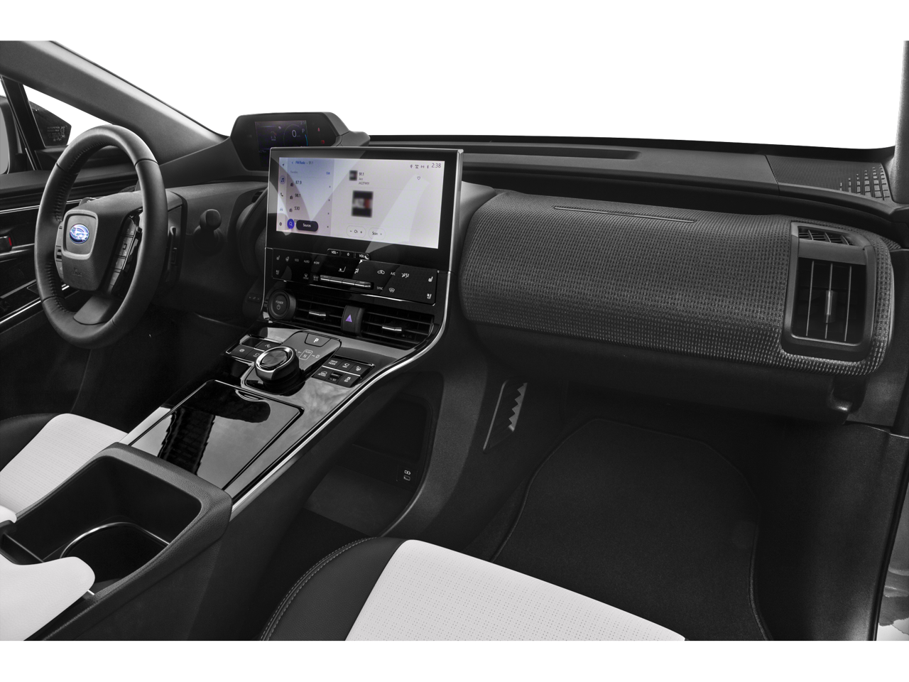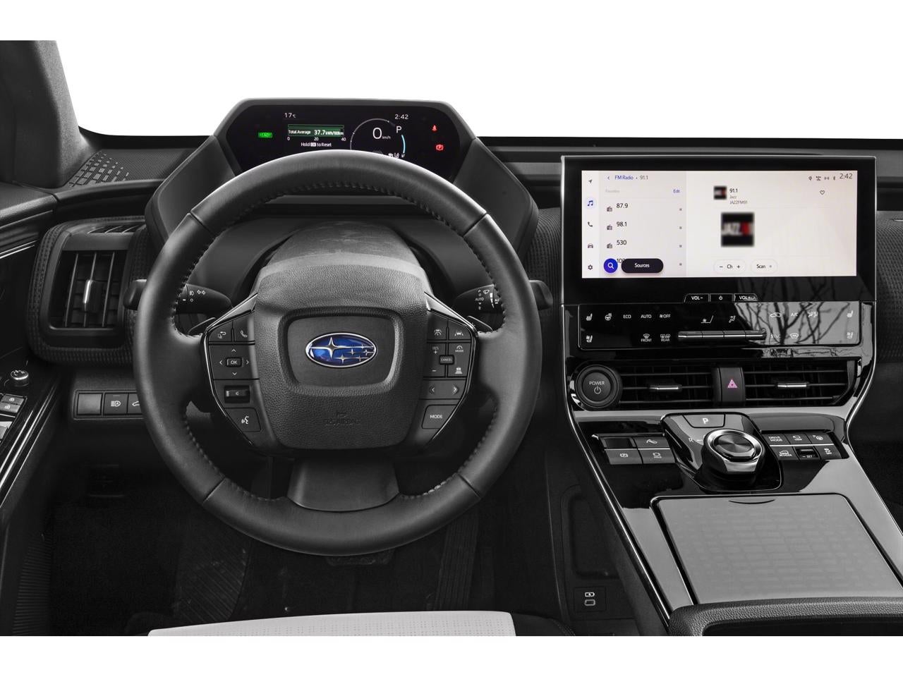 - Radio: Subaru Solterra Connect 12.3" Multimedia System -inc: navigation system (navigation subscription required), AM/FM HD radio, Bluetooth® audio streaming and hands-free phone connectivity w/SMS text messaging (refer to subaru.com for cell phone compatibility), SiriusXM all access radio (4 months free trial included/subscription required after), Android Auto, Carplay and harman/kardon 11 speaker system w/576 watt equivalent maximum output amplifier, multi-touch gesture high resolution display screen, Near Field Communication (NFC), Subaru Solterra Connect intelligent assistant includes dual-zone voice control system w/driver and passenger headliner microphone, steering wheel talk switch, cloud navigation operation, integrated steering operation (subscription required), USB/Over The Air (OTA) audio system updates, USB/Map Over The Air (MOTA) navigation system updates, steering wheel control switches for audio system and Bluetooth®, USB A input/charge port and illuminated dual USB C input/charge port