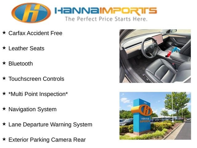 Why shop with Hanna Imports? We specialize in hand-selecting top-quality used cars, trucks, and SUVs for drivers across Raleigh, Durham, Cary, Chapel Hill, and the greater Triangle area of North Carolina. Our massive selection of 1,000+ vehicles on our Raleigh lot is carefully curated to include the most sought-after models, all priced below market value. We believe in transparency and efficiency—our vehicles are aggressively priced from the start, which means no haggling, no hassle, and no wasted time. The price you see is our absolute best price. Whether you're coming from Wake Forest, Apex, Garner, or anywhere in central NC, we’re committed to making your car-buying experience smooth, affordable, and enjoyable. Come see why Hanna Imports is one of the most trusted used car dealerships in North Carolina! Used Tesla Model 3 in Raleigh. Used Tesla Model 3 in North Carolina, Exterior Parking Camera Rear, Heated front seats, Heated rear seats, Lane Departure Warning System, Navigation System, 4-Wheel Disc Brakes, 8 Speakers, ABS brakes, Air Conditioning, Alloy wheels, Audio memory, Auto High-beam Headlights, Auto-dimming door mirrors, Auto-dimming Rear-View mirror, Automatic temperature control, Brake assist, Bumpers: body-color, Compass, Delay-off headlights, Driver door bin, Driver vanity mirror, Dual front impact airbags, Dual front side impact airbags, Electronic Stability Control, Emergency communication system, Four wheel independent suspension, Front anti-roll bar, Front Bucket Seats, Front Center Armrest, Front dual zone A/C, Front reading lights, Fully automatic headlights, Genuine wood dashboard insert, Heated door mirrors, Heated Front Bucket Seats, Heated steering wheel, HVAC memory, Illuminated entry, Knee airbag, Low tire pressure warning, Memory seat, Occupant sensing airbag, Outside temperature display, Overhead airbag, Passenger door bin, Passenger vanity mirror, Power door mirrors, Power driver seat, Power passenger seat, Power steering, Power windows, Premium Seat Trim, Radio data system, Radio: Upgraded Audio System, Rain sensing wipers, Rear reading lights, Rear seat center armrest, Rear window defroster, Security system, Speed control, Speed-sensing steering, Split folding rear seat, Steering wheel memory, Steering wheel mounted A/C controls, Steering wheel mounted audio controls, Telescoping steering wheel, Tilt steering wheel, Traction control, Trip computer, Variably intermittent wipers, and Wheels: 18 x 8.5 Aero.