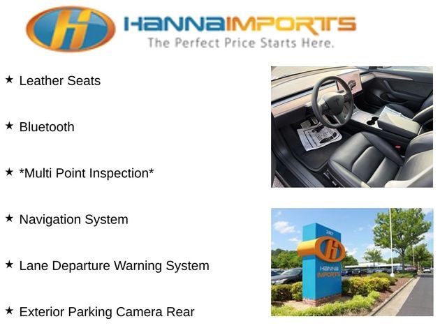 Why shop with Hanna Imports? We specialize in hand-selecting top-quality used cars, trucks, and SUVs for drivers across Raleigh, Durham, Cary, Chapel Hill, and the greater Triangle area of North Carolina. Our massive selection of 1,000+ vehicles on our Raleigh lot is carefully curated to include the most sought-after models, all priced below market value. We believe in transparency and efficiency—our vehicles are aggressively priced from the start, which means no haggling, no hassle, and no wasted time. The price you see is our absolute best price. Whether you're coming from Wake Forest, Apex, Garner, or anywhere in central NC, we’re committed to making your car-buying experience smooth, affordable, and enjoyable. Come see why Hanna Imports is one of the most trusted used car dealerships in North Carolina! Used Tesla Model 3 in Raleigh. Used Tesla Model 3 in North Carolina, Exterior Parking Camera Rear, Lane Departure Warning System, Navigation System, 4-Wheel Disc Brakes, 8 Speakers, ABS brakes, Air Conditioning, Alloy wheels, Audio memory, Auto High-beam Headlights, Auto-dimming door mirrors, Auto-dimming Rear-View mirror, Automatic temperature control, Brake assist, Bumpers: body-color, Compass, Delay-off headlights, Driver door bin, Driver vanity mirror, Dual front impact airbags, Dual front side impact airbags, Electronic Stability Control, Emergency communication system, Four wheel independent suspension, Front anti-roll bar, Front Bucket Seats, Front Center Armrest, Front dual zone A/C, Front reading lights, Fully automatic headlights, Genuine wood dashboard insert, Heated door mirrors, Heated Front Bucket Seats, Heated front seats, Heated rear seats, Heated steering wheel, HVAC memory, Illuminated entry, Knee airbag, Low tire pressure warning, Memory seat, Occupant sensing airbag, Outside temperature display, Overhead airbag, Passenger door bin, Passenger vanity mirror, Power door mirrors, Power driver seat, Power passenger seat, Power steering, Power windows, Premium Seat Trim, Radio data system, Radio: Upgraded Audio System, Rain sensing wipers, Rear reading lights, Rear seat center armrest, Rear window defroster, Security system, Speed control, Speed-sensing steering, Split folding rear seat, Steering wheel memory, Steering wheel mounted A/C controls, Steering wheel mounted audio controls, Telescoping steering wheel, Tilt steering wheel, Traction control, Trip computer, Variably intermittent wipers, and Wheels: 18 x 8.5 Aero.